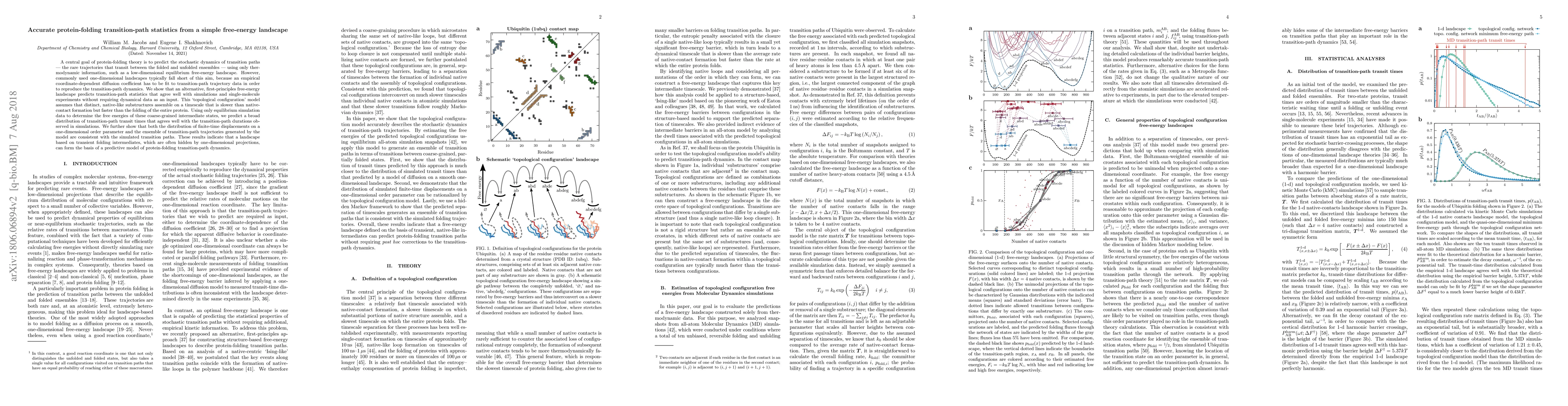 A central goal of protein-folding theory is to predict the stochastic dynamics of transition paths --- the rare trajectories that transit between the folded and unfolded ensembles --- using only thermodynamic information, such as a low-dimensional equilibrium free-energy landscape. However, commonly used one-dimensional landscapes typically fall short of this aim, because an empirical coordinate-dependent diffusion coefficient has to be fit to transition-path trajectory data in order to reproduce the transition-path dynamics. We show that an alternative, first-principles free-energy landscape predicts transition-path statistics that agree well with simulations and single-molecule experiments without requiring dynamical data as an input. This 'topological configuration' model assumes that distinct, native-like substructures assemble on a timescale that is slower than native-contact formation but faster than the folding of the entire protein. Using only equilibrium simulation data to determine the free energies of these coarse-grained intermediate states, we predict a broad distribution of transition-path transit times that agrees well with the transition-path durations observed in simulations. We further show that both the distribution of finite-time displacements on a one-dimensional order parameter and the ensemble of transition-path trajectories generated by the model are consistent with the simulated transition paths. These results indicate that a landscape based on transient folding intermediates, which are often hidden by one-dimensional projections, can form the basis of a predictive model of protein-folding transition-path dynamics.