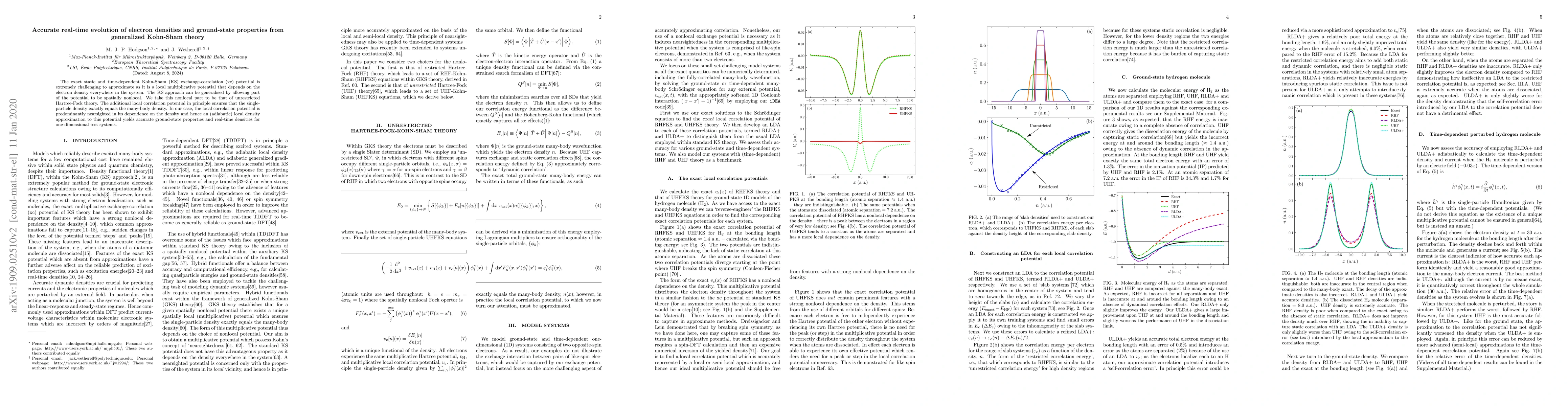 This paper proposes a generalized Kohn-Sham approach that incorporates a nonlocal potential from unrestricted Hartree-Fock theory, combined with a local correlation potential. This method accurately predicts ground-state properties and real-time electron densities in one-dimensional systems using an adiabatic local density approximation.