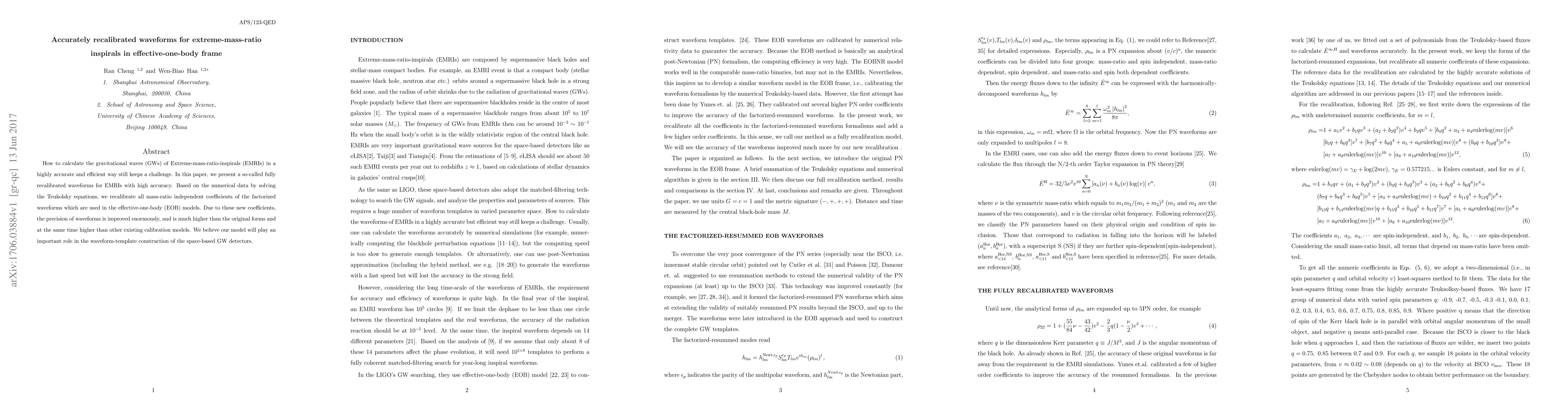 This paper presents recalibrated waveforms for extreme-mass-ratio inspirals (EMRIs) in effective-one-body models, achieving significantly higher accuracy by solving Teukolsky equations and recalibrating mass-ratio independent coefficients. The new model promises improved precision for gravitational wave detection by space-based detectors.