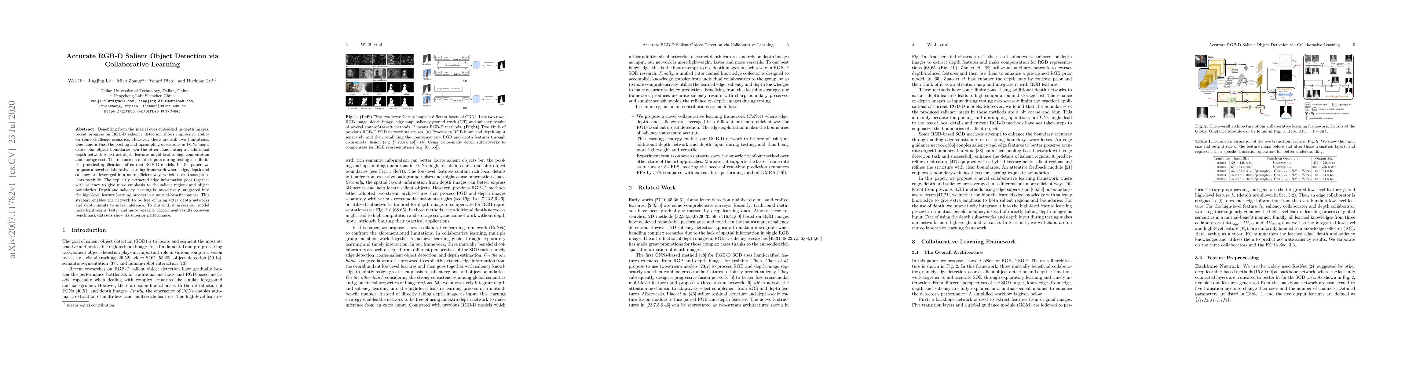 This paper proposes a collaborative learning framework for RGB-D salient object detection that efficiently integrates edge, depth, and saliency information, eliminating the need for extra depth networks and reducing computational costs, resulting in a more lightweight, faster, and versatile model. Experimental results demonstrate superior performance across seven benchmark datasets.