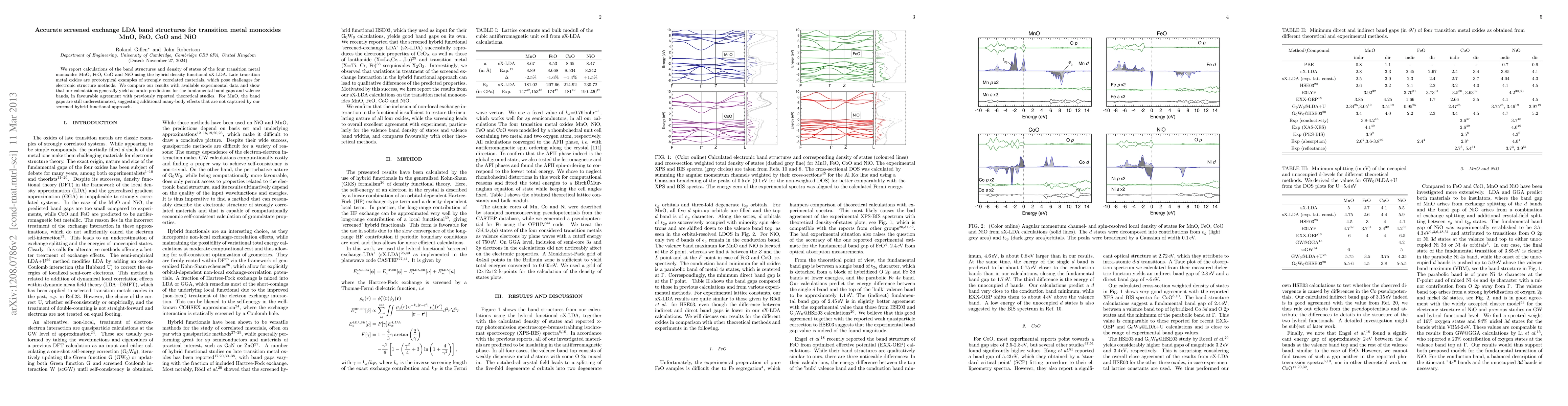 We report calculations of the band structures and density of states of the four transition metal monoxides MnO, FeO, CoO and NiO using the hybrid density functional sX-LDA. Late transition metal oxides are prototypical examples of strongly correlated materials, which pose challenges for electronic structure methods. We compare our results with available experimental data and show that our calculations yield accurate predictions for the fundamental band gaps and valence bands of FeO, CoO and NiO. For MnO, the band gaps are underestimated, suggesting additional many-body effects that are not captured by our screened hybrid functional approach.
