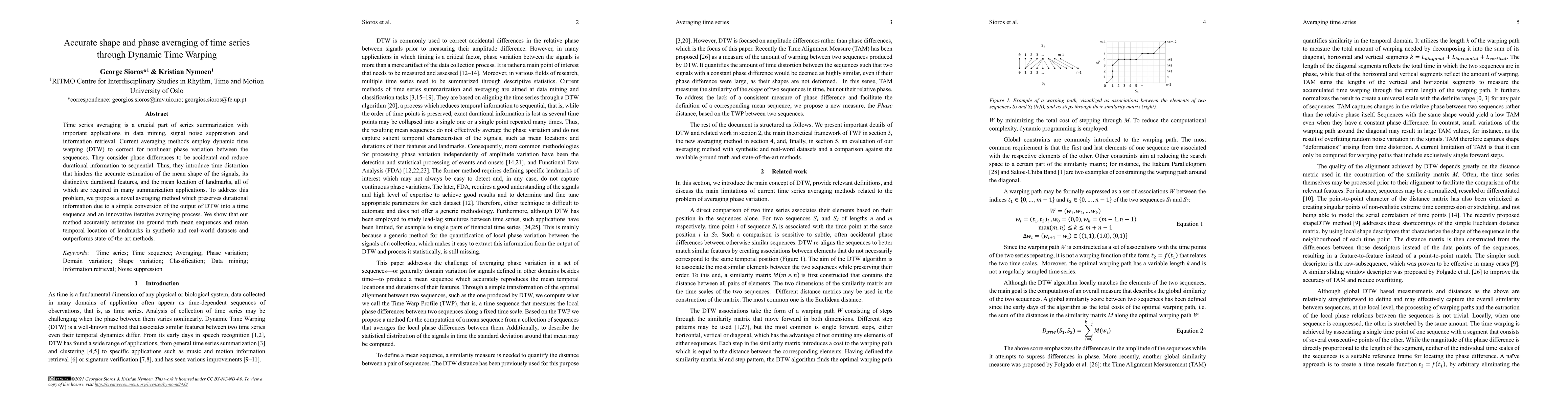 This paper proposes a new method for averaging time series data using Dynamic Time Warping (DTW), which accurately preserves durational information and outperforms existing methods in both synthetic and real-world datasets.
