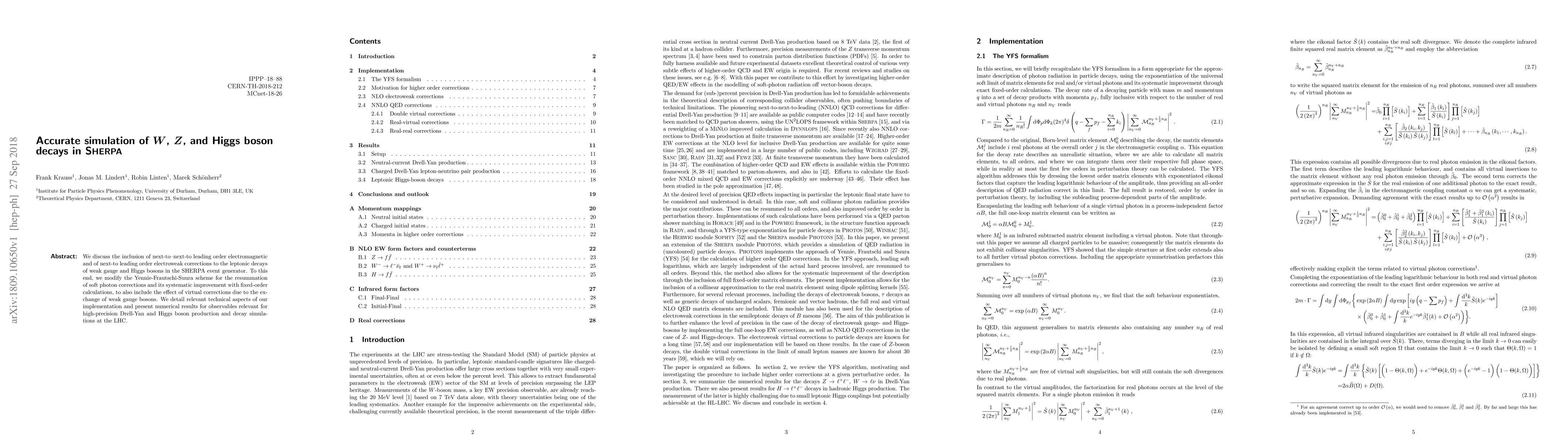 This paper details the enhancement of the SHERPA event generator to simulate W, Z, and Higgs boson decays with next-to-next-to leading order electromagnetic and next-to-leading order electroweak corrections. The authors improve the Yennie-Frautschi-Suura scheme to include virtual corrections from weak gauge bosons and present high-precision results for LHC observables.