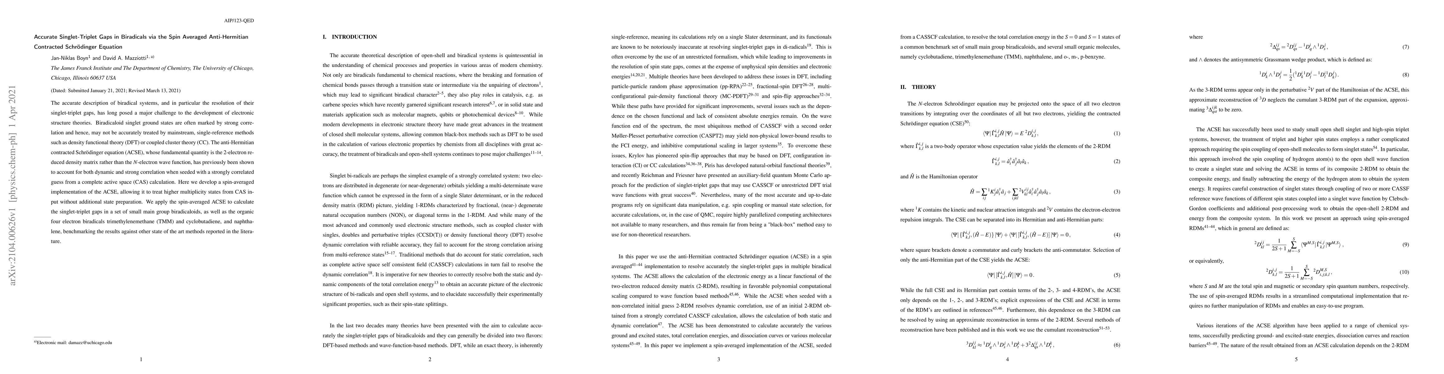 This paper introduces a spin-averaged anti-Hermitian contracted Schrödinger equation (ACSE) to accurately calculate singlet-triplet gaps in biradical systems, demonstrating its effectiveness on small main group biradicals and organic biradicals like trimethylenemethane and cyclobutadiene. The method outperforms other state-of-the-art methods by accounting for strong correlation effects.