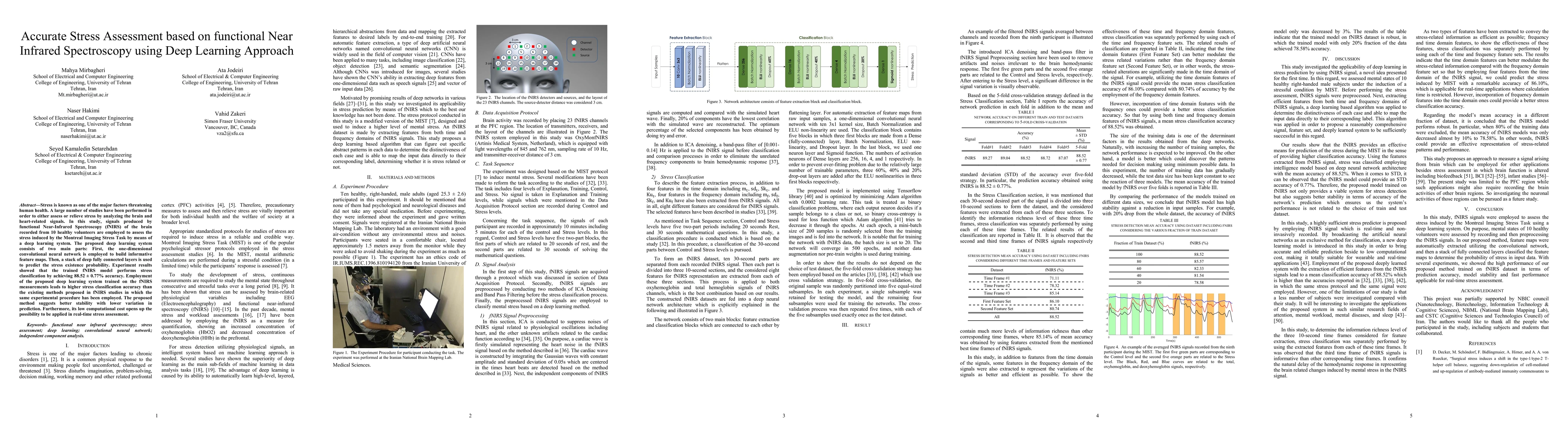 This study employs a deep learning system to accurately assess stress using functional Near-Infrared Spectroscopy (fNIRS) signals from healthy volunteers. The deep learning model achieved 88.52 ± 0.77% accuracy in stress classification, outperforming existing fNIRS methods and showing potential for real-time stress assessment.