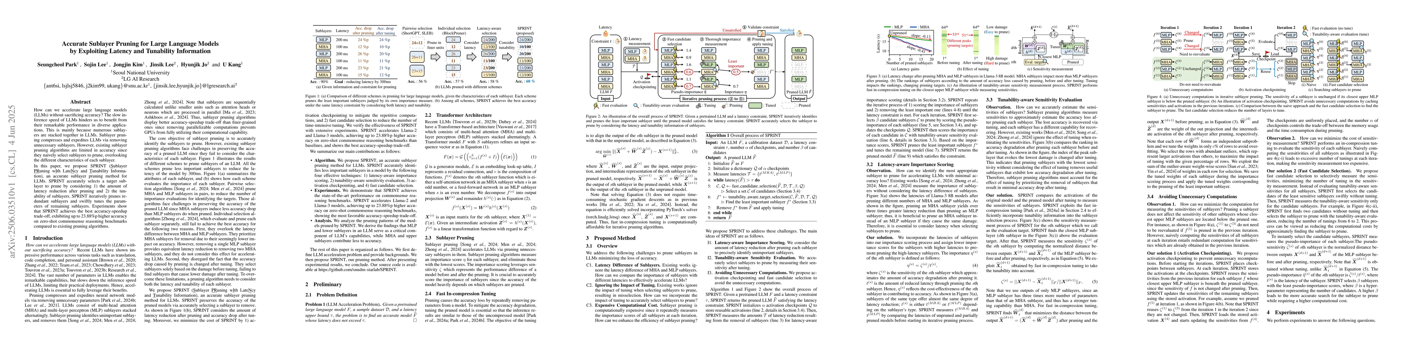 Researchers propose SPRINT, a sublayer pruning method for large language models that balances accuracy with speedup, achieving up to 23.88% higher accuracy on zero-shot commonsense reasoning benchmarks.