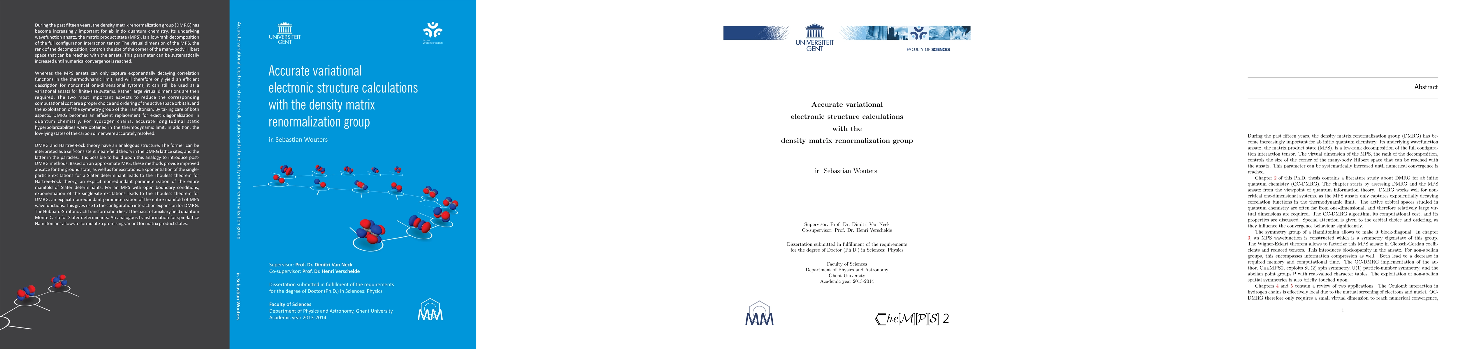 During the past 15 years, the density matrix renormalization group (DMRG) has become increasingly important for ab initio quantum chemistry. The underlying matrix product state (MPS) ansatz is a low-rank decomposition of the full configuration interaction tensor. The virtual dimension of the MPS controls the size of the corner of the many-body Hilbert space that can be reached. Whereas the MPS ansatz will only yield an efficient description for noncritical one-dimensional systems, it can still be used as a variational ansatz for other finite-size systems. Rather large virtual dimensions are then required. The two most important aspects to reduce the corresponding computational cost are a proper choice and ordering of the active space orbitals, and the exploitation of the symmetry group of the Hamiltonian. By taking care of both aspects, DMRG becomes an efficient replacement for exact diagonalization in quantum chemistry. DMRG and Hartree-Fock theory have an analogous structure. The former can be interpreted as a self-consistent mean-field theory in the DMRG lattice sites, and the latter in the particles. It is possible to build upon this analogy to introduce post-DMRG methods. Based on an approximate MPS, these methods provide improved ans\"atze for the ground state, as well as for excitations. Exponentiation of the single-particle (single-site) excitations for a Slater determinant (an MPS with open boundary conditions) leads to the Thouless theorem for Hartree-Fock theory (DMRG), an explicit nonredundant parameterization of the entire manifold of Slater determinants (MPS wavefunctions). This gives rise to the configuration interaction expansion for DMRG. The Hubbard-Stratonovich transformation lies at the basis of auxiliary field quantum Monte Carlo for Slater determinants. An analogous transformation for spin-lattice Hamiltonians allows to formulate a promising variant for MPSs.