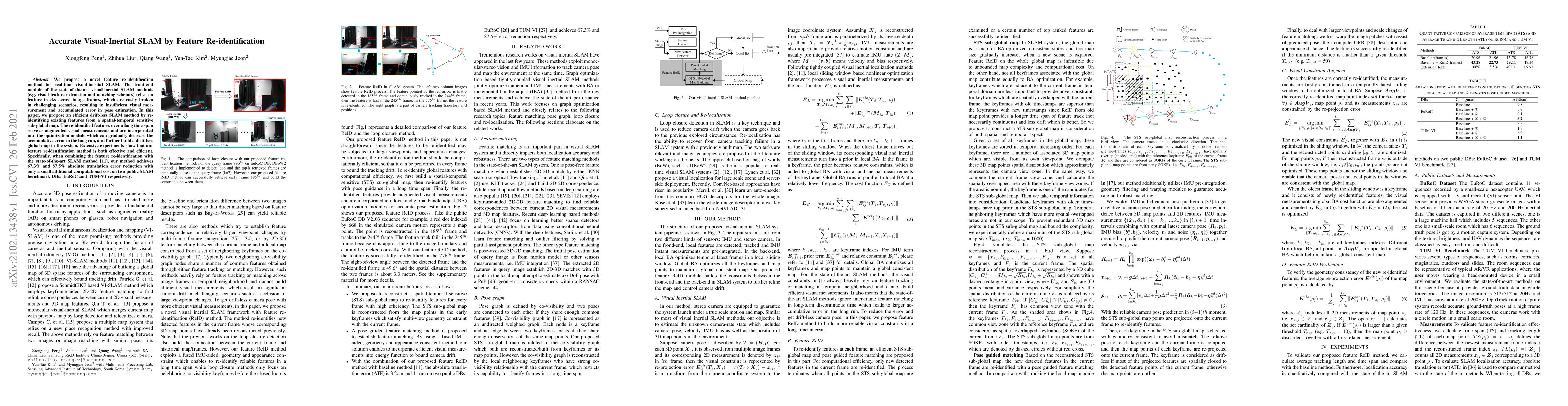 This paper proposes a novel feature re-identification method to enhance real-time visual-inertial SLAM by reducing accumulated error through spatial-temporal sub-global map feature re-identification. Experiments show significant error reduction (67.3% and 87.5%) with minimal additional computational cost on EuRoC and TUM-VI datasets.