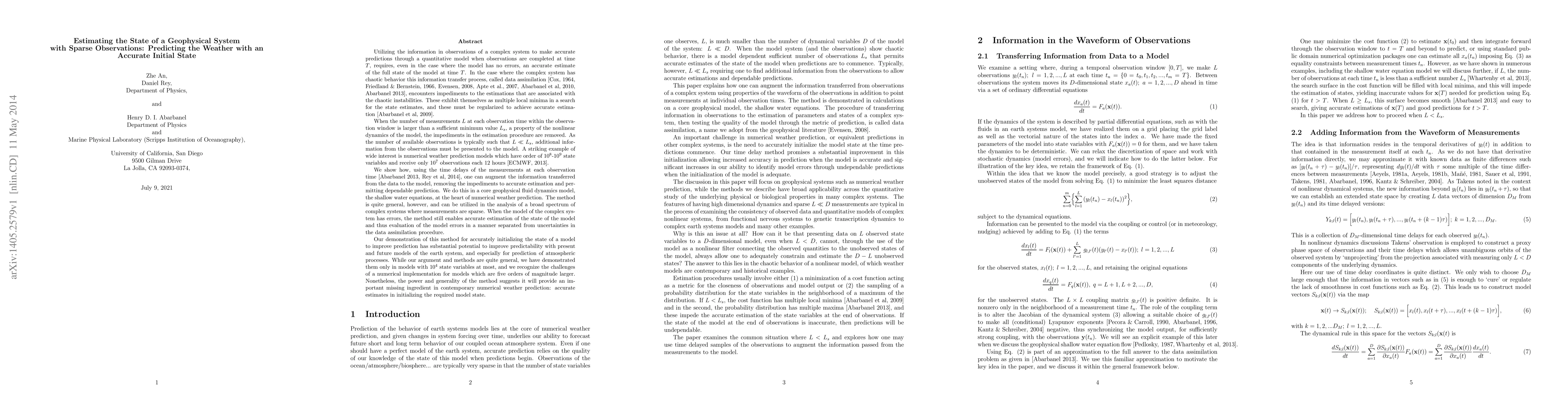 Utilizing the information in observations of a complex system to make accurate predictions through a quantitative model when observations are completed at time $T$, requires an accurate estimate of the full state of the model at time $T$. When the number of measurements $L$ at each observation time within the observation window is larger than a sufficient minimum value $L_s$, the impediments in the estimation procedure are removed. As the number of available observations is typically such that $L \ll L_s$, additional information from the observations must be presented to the model. We show how, using the time delays of the measurements at each observation time, one can augment the information transferred from the data to the model, removing the impediments to accurate estimation and permitting dependable prediction. We do this in a core geophysical fluid dynamics model, the shallow water equations, at the heart of numerical weather prediction. The method is quite general, however, and can be utilized in the analysis of a broad spectrum of complex systems where measurements are sparse. When the model of the complex system has errors, the method still enables accurate estimation of the state of the model and thus evaluation of the model errors in a manner separated from uncertainties in the data assimilation procedure.