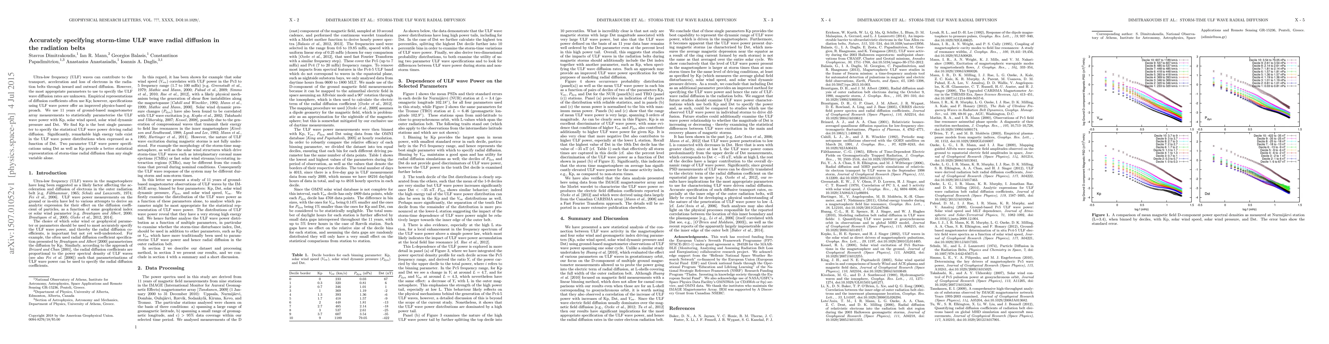 This paper investigates the parameters that best specify the radial diffusion of ultra-low frequency (ULF) waves in the radiation belts, finding that Kp is the best single parameter, while a two-parameter specification using both Kp and Dst provides a more accurate representation of storm-time radial diffusion.