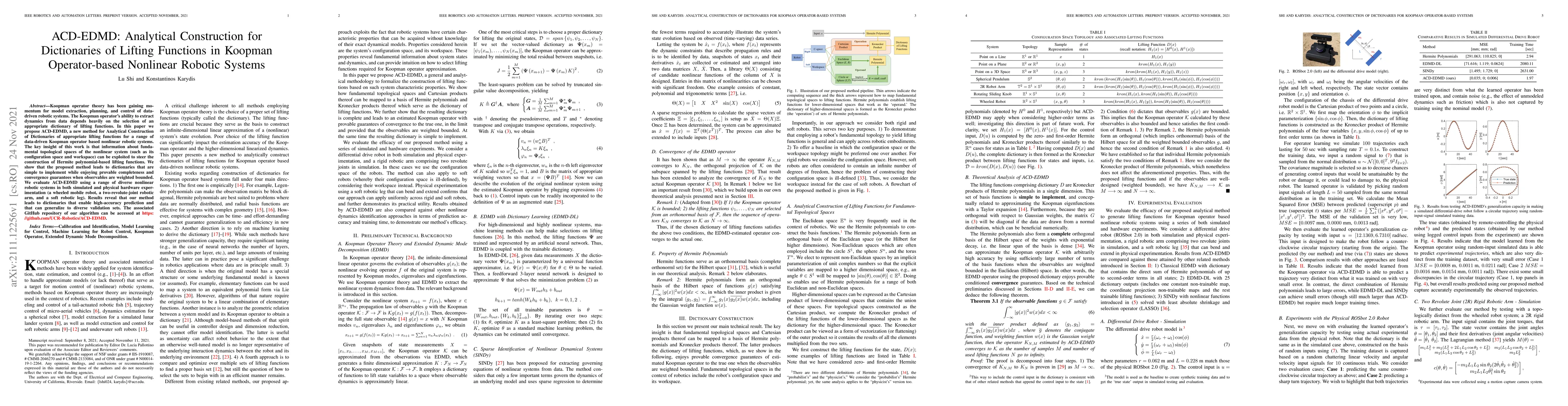 This paper introduces ACD-EDMD, a novel method for constructing dictionaries of lifting functions tailored for Koopman operator-based nonlinear robotic systems. By leveraging topological information of the system, the method generates Hermite polynomial-based lifting functions that ensure completeness and convergence, demonstrated through successful applications in various robotic systems.