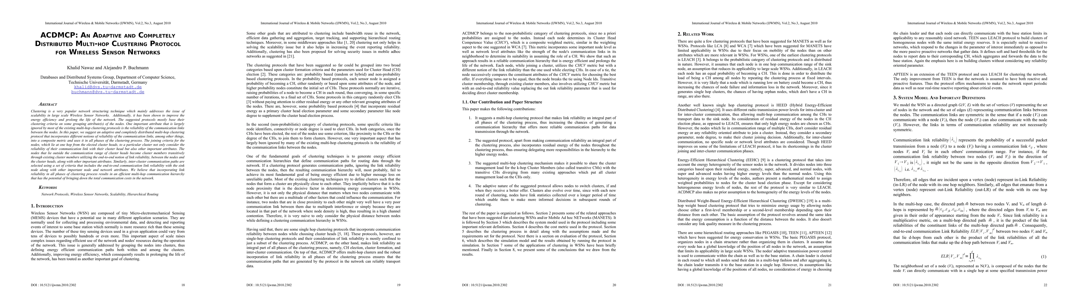 This paper proposes an adaptive and completely distributed multi-hop clustering protocol for wireless sensor networks that incorporates communication link reliability into its clustering criteria. The protocol aims to enhance network scalability, energy efficiency, and overall network life by considering link reliability in cluster formation and inter-cluster communication path selection.