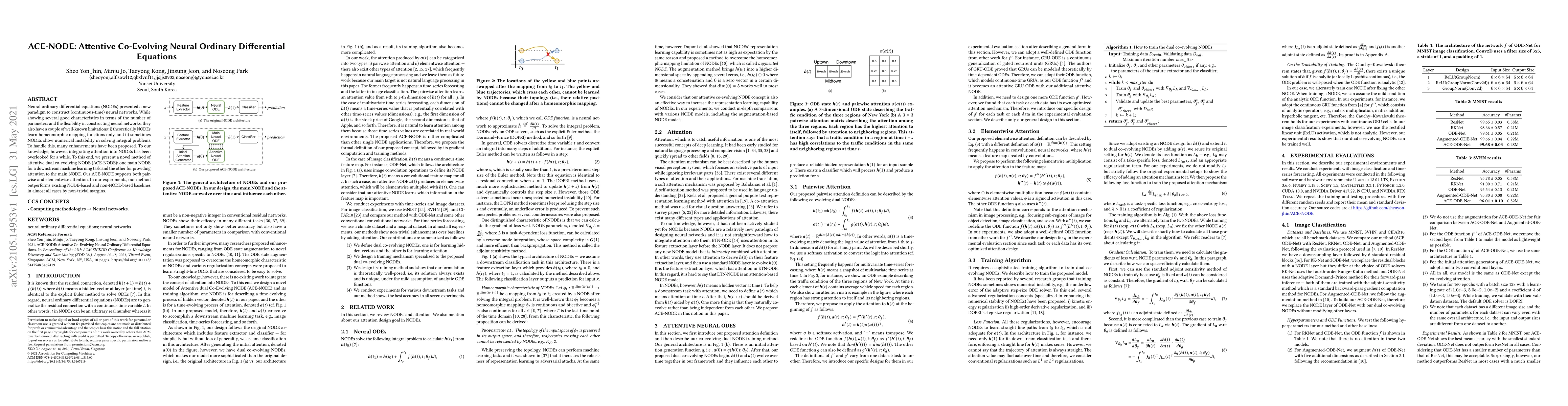 The paper introduces ACE-NODE, an attentive dual co-evolving neural ordinary differential equation (NODE) framework that integrates attention mechanisms to address limitations of traditional NODEs, achieving superior performance over existing baselines in various machine learning tasks.
