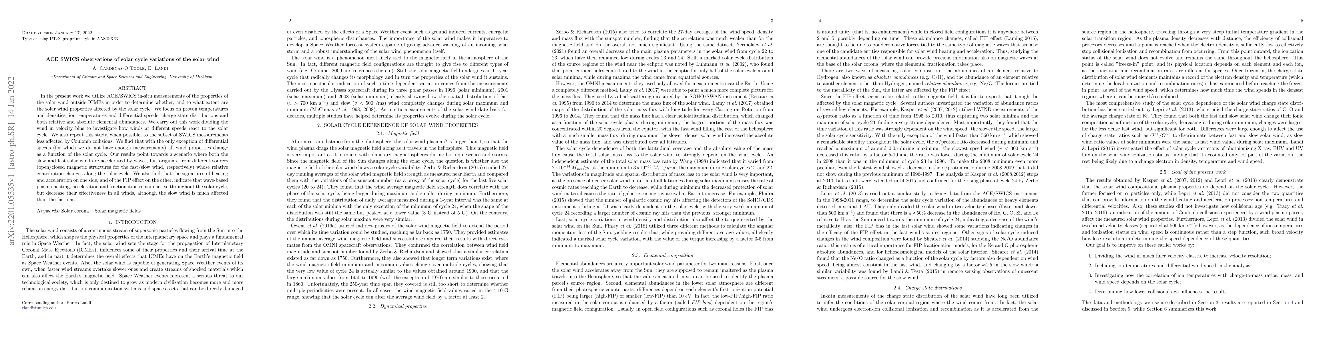 This study investigates solar wind properties using ACE/SWICS data to determine the solar cycle's impact, finding that most properties vary with the cycle, except for differential speeds. The results suggest that both slow and fast solar winds are wave-accelerated but originate from different sources, with wave-based heating and acceleration decreasing in effectiveness throughout the cycle, particularly affecting the slow wind more.