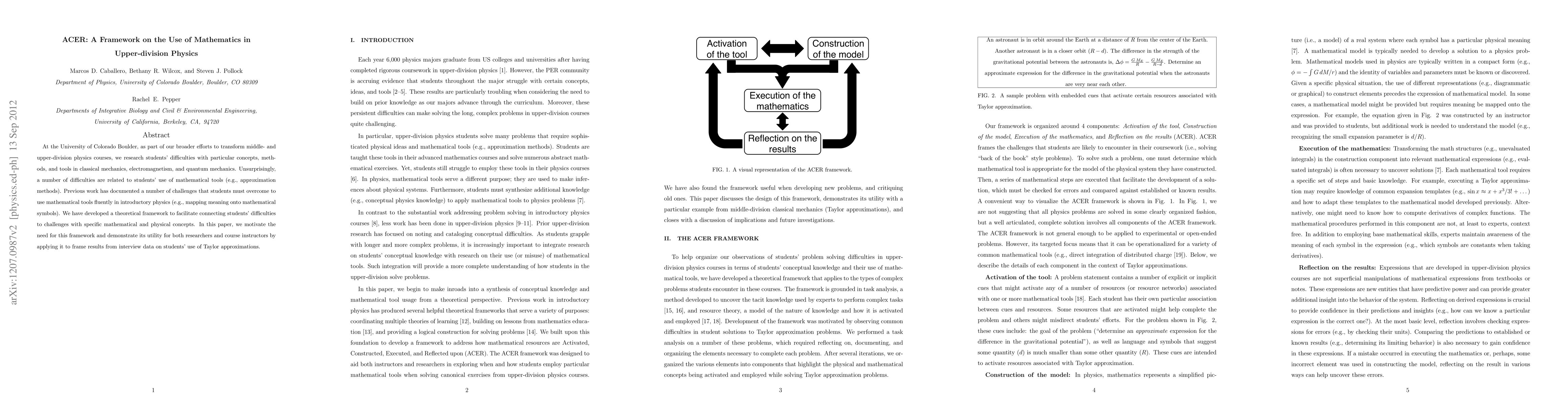 The paper introduces ACER, a framework to link students' difficulties in upper-division physics to challenges with mathematical tools, specifically focusing on Taylor approximations. It aims to aid both researchers and instructors in understanding and addressing these difficulties.