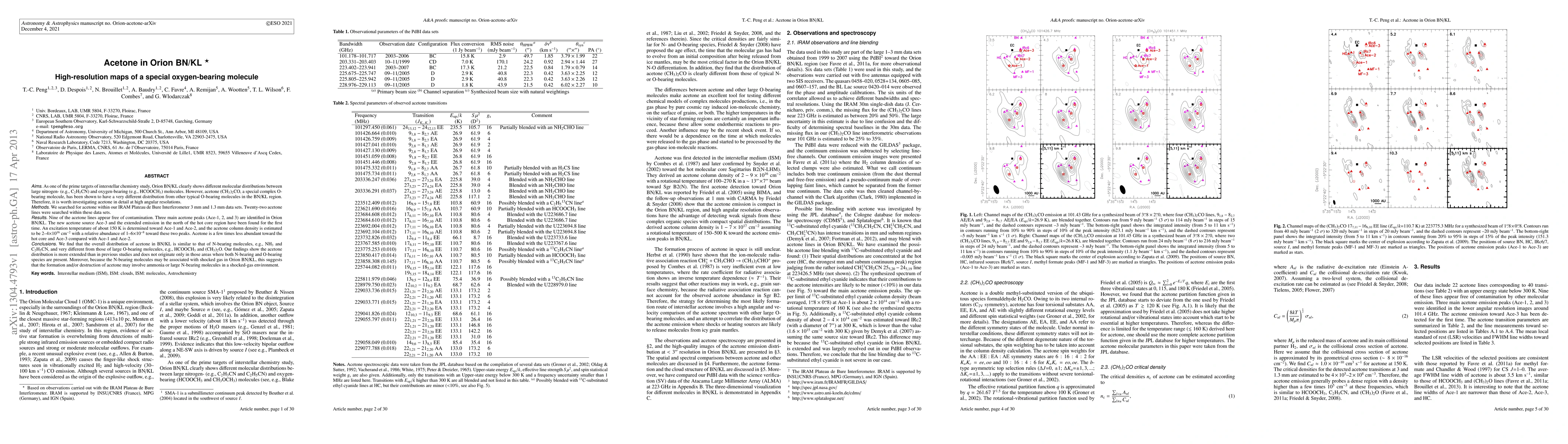This study presents high-resolution maps of acetone (CH3)2CO in the Orion BN/KL region, revealing distinct distribution patterns differing from typical oxygen-bearing molecules. The research identifies three main acetone peaks, including a new source Ace-3, and suggests acetone's formation may involve ammonia or large nitrogen-bearing molecules in a shocked-gas environment.