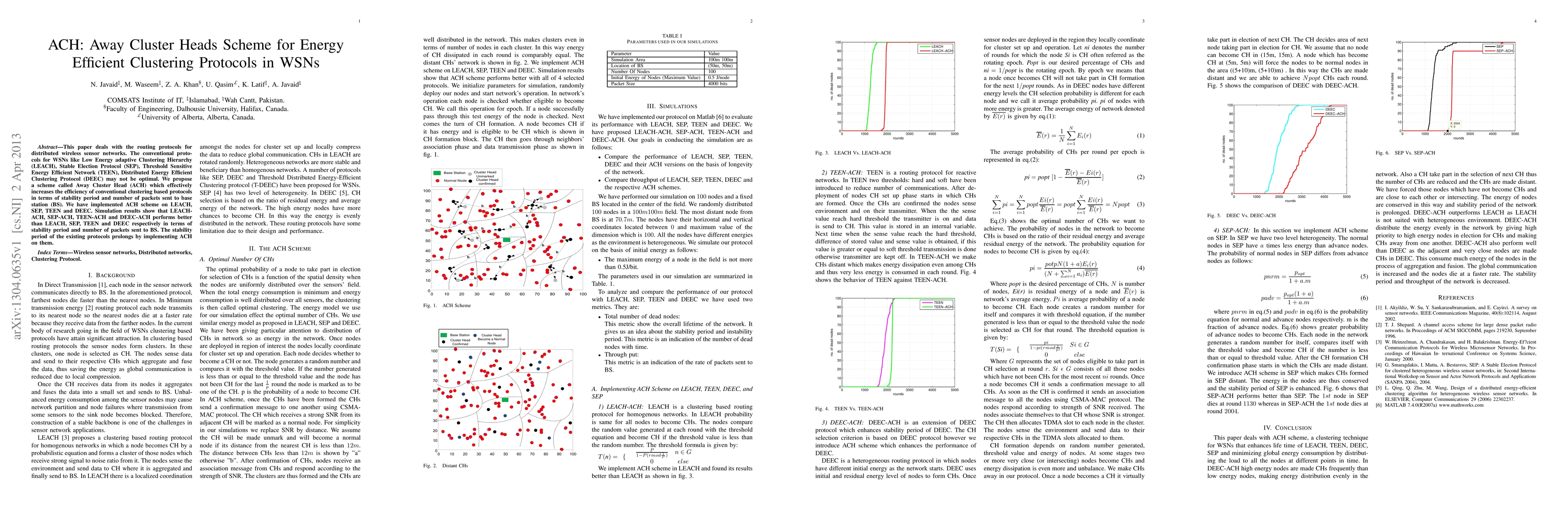 This paper proposes the Away Cluster Heads (ACH) scheme to enhance the energy efficiency of conventional clustering protocols in wireless sensor networks, showing improved stability periods and reduced packets sent to the base station when implemented on LEACH, SEP, TEEN, and DEEC. Simulation results confirm the superior performance of the ACH-enhanced protocols.