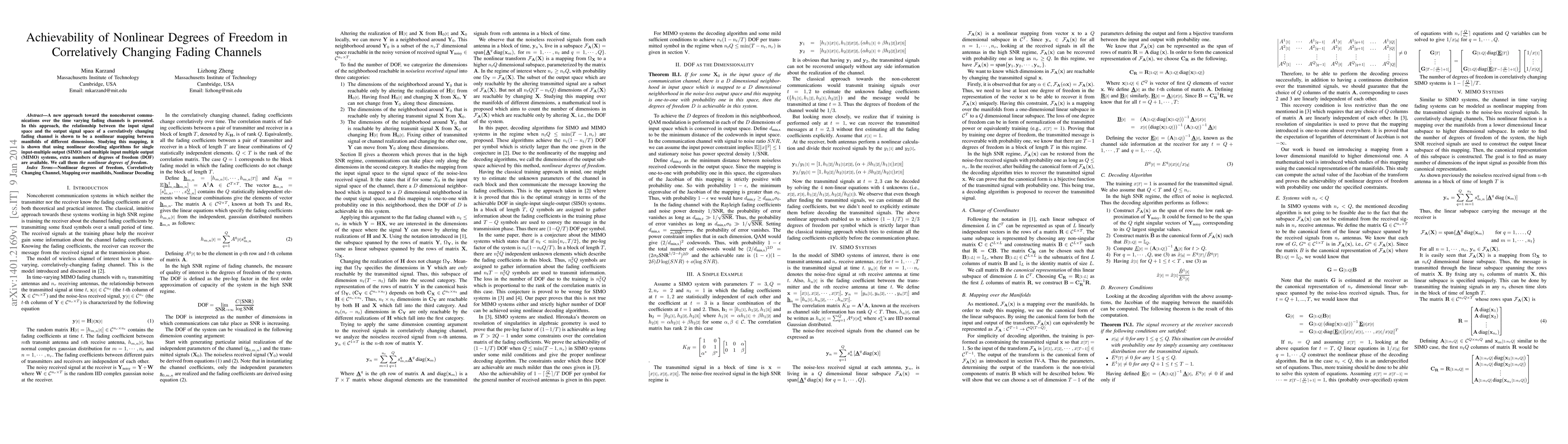 A new approach toward the noncoherent communications over the time varying fading channels is presented. In this approach, the relationship between the input signal space and the output signal space of a correlatively changing fading channel is shown to be a nonlinear mapping between manifolds of different dimensions. Studying this mapping, it is shown that using nonlinear decoding algorithms for single input-multiple output (SIMO) and multiple input multiple output (MIMO) systems, extra numbers of degrees of freedom (DOF) are available. We call them the nonlinear degrees of freedom.