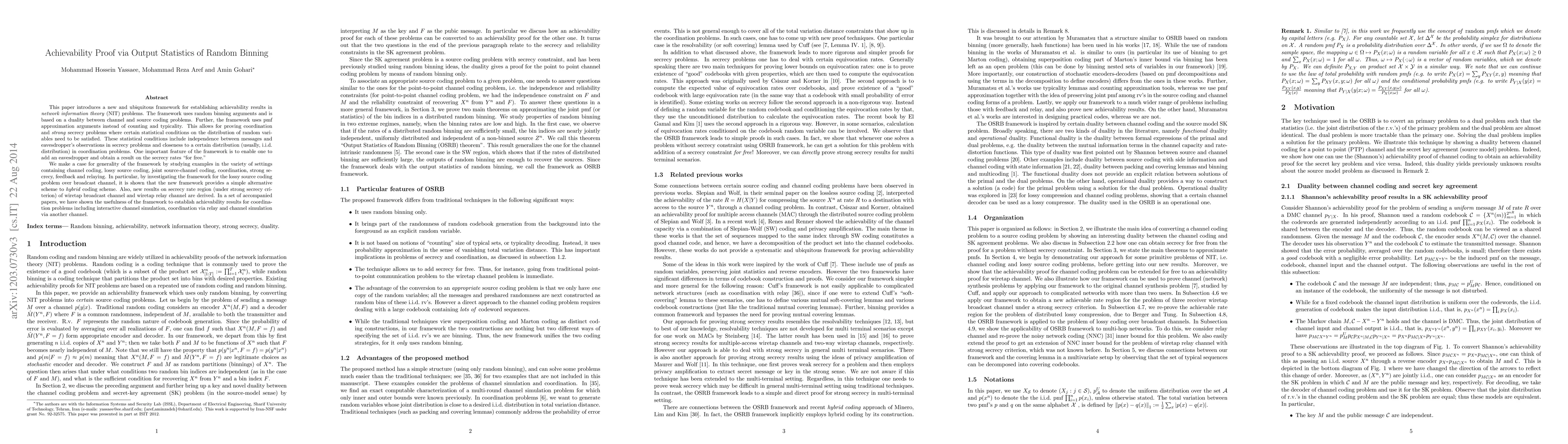 This paper introduces a new and ubiquitous framework for establishing achievability results in \emph{network information theory} (NIT) problems. The framework uses random binning arguments and is based on a duality between channel and source coding problems. {Further,} the framework uses pmf approximation arguments instead of counting and typicality. This allows for proving coordination and \emph{strong} secrecy problems where certain statistical conditions on the distribution of random variables need to be satisfied. These statistical conditions include independence between messages and eavesdropper's observations in secrecy problems and closeness to a certain distribution (usually, i.i.d. distribution) in coordination problems. One important feature of the framework is to enable one {to} add an eavesdropper and obtain a result on the secrecy rates "for free." We make a case for generality of the framework by studying examples in the variety of settings containing channel coding, lossy source coding, joint source-channel coding, coordination, strong secrecy, feedback and relaying. In particular, by investigating the framework for the lossy source coding problem over broadcast channel, it is shown that the new framework provides a simple alternative scheme to \emph{hybrid} coding scheme. Also, new results on secrecy rate region (under strong secrecy criterion) of wiretap broadcast channel and wiretap relay channel are derived. In a set of accompanied papers, we have shown the usefulness of the framework to establish achievability results for coordination problems including interactive channel simulation, coordination via relay and channel simulation via another channel.