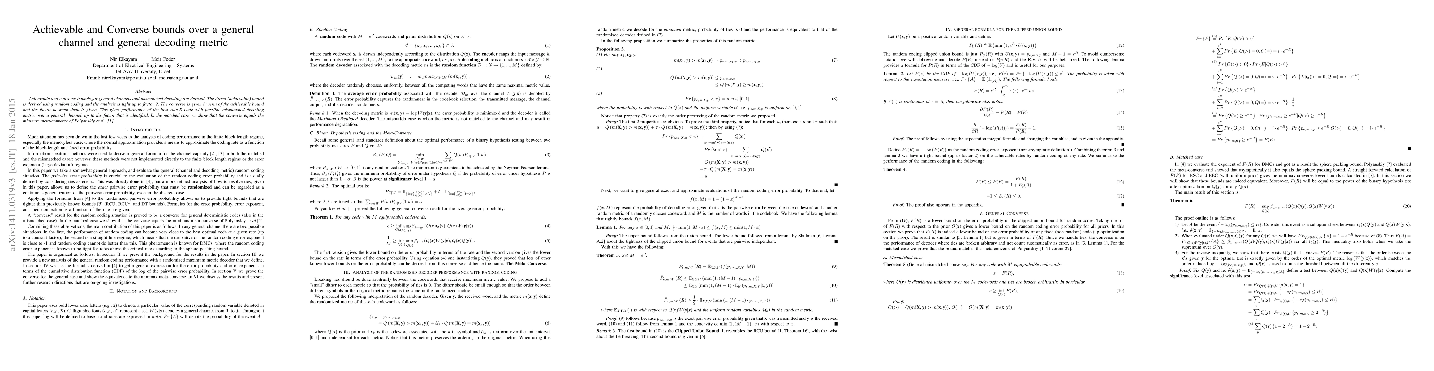 Achievable and converse bounds for general channels and mismatched decoding are derived. The direct (achievable) bound is derived using random coding and the analysis is tight up to factor 2. The converse is given in term of the achievable bound and the factor between them is given. This gives performance of the best rate-R code with possible mismatched decoding metric over a general channel, up to the factor that is identified. In the matched case we show that the converse equals the minimax meta-converse of Polyanskiy et al.