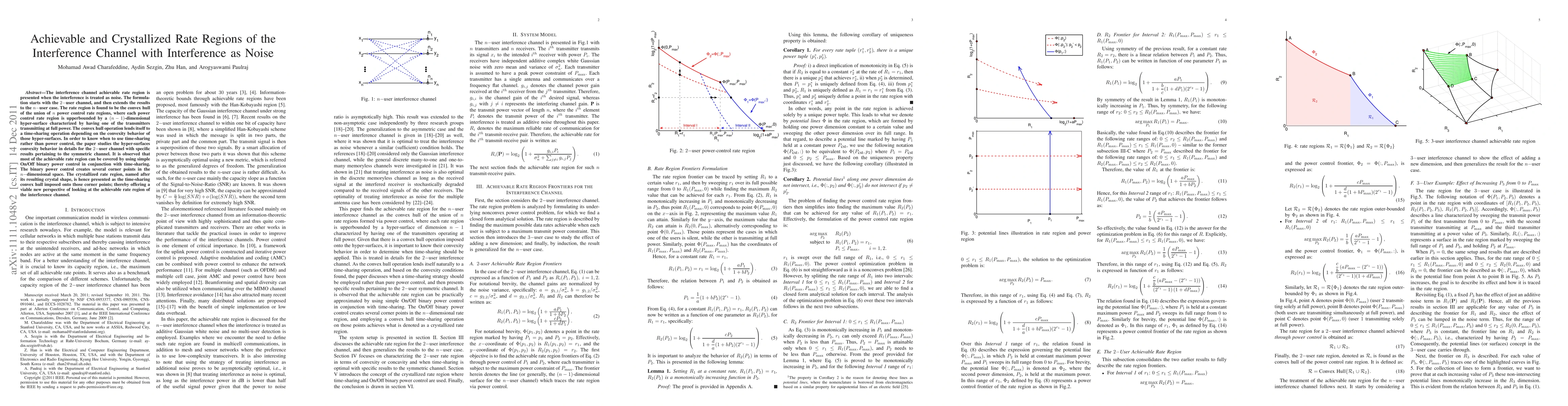 The interference channel achievable rate region is presented when the interference is treated as noise. The formulation starts with the 2-user channel, and then extends the results to the n-user case. The rate region is found to be the convex hull of the union of n power control rate regions, where each power control rate region is upperbounded by a (n-1)-dimensional hyper-surface characterized by having one of the transmitters transmitting at full power. The convex hull operation lends itself to a time-sharing operation depending on the convexity behavior of those hyper-surfaces. In order to know when to use time-sharing rather than power control, the paper studies the hyper-surfaces convexity behavior in details for the 2-user channel with specific results pertaining to the symmetric channel. It is observed that most of the achievable rate region can be covered by using simple On/Off binary power control in conjunction with time-sharing. The binary power control creates several corner points in the n-dimensional space. The crystallized rate region, named after its resulting crystal shape, is hence presented as the time-sharing convex hull imposed onto those corner points; thereby offering a viable new perspective of looking at the achievable rate region of the interference channel.