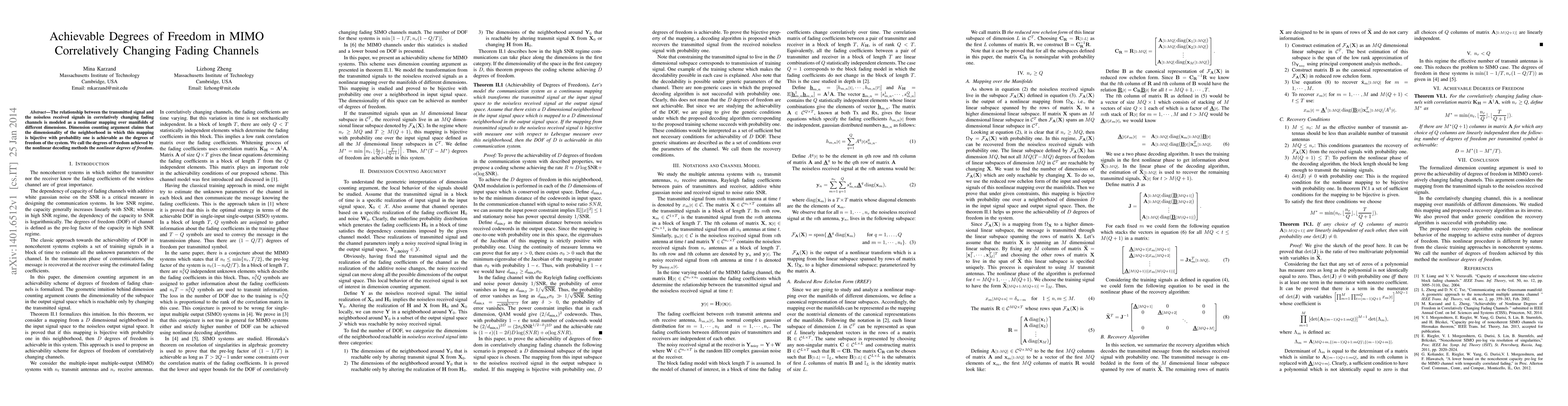 This paper investigates the achievable degrees of freedom in MIMO channels with correlatively changing fading, modeling the signal-to-noise relationship as a nonlinear mapping. The authors propose that the dimensionality of the neighborhood where this mapping is bijective defines the nonlinear degrees of freedom achievable by nonlinear decoding methods.