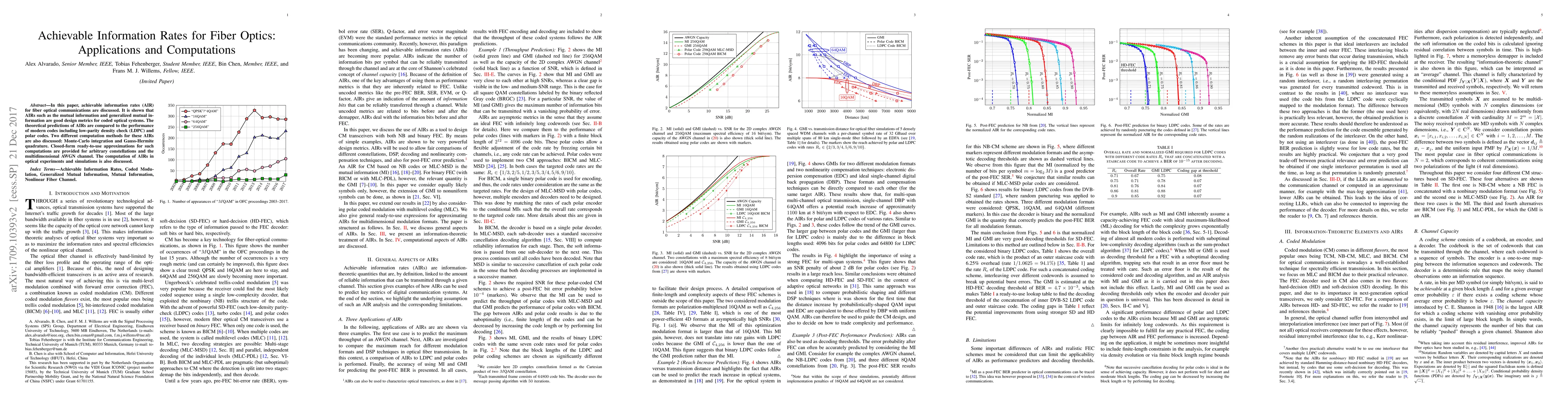 In this paper, achievable information rates (AIR) for fiber optical communications are discussed. It is shown that AIRs such as the mutual information and generalized mutual information are good design metrics for coded optical systems. The theoretical predictions of AIRs are compared to the performance of modern codes including low-parity density check (LDPC) and polar codes. Two different computation methods for these AIRs are also discussed: Monte-Carlo integration and Gauss-Hermite quadrature. Closed-form ready-to-use approximations for such computations are provided for arbitrary constellations and the multidimensional AWGN channel. The computation of AIRs in optical experiments and simulations is also discussed.