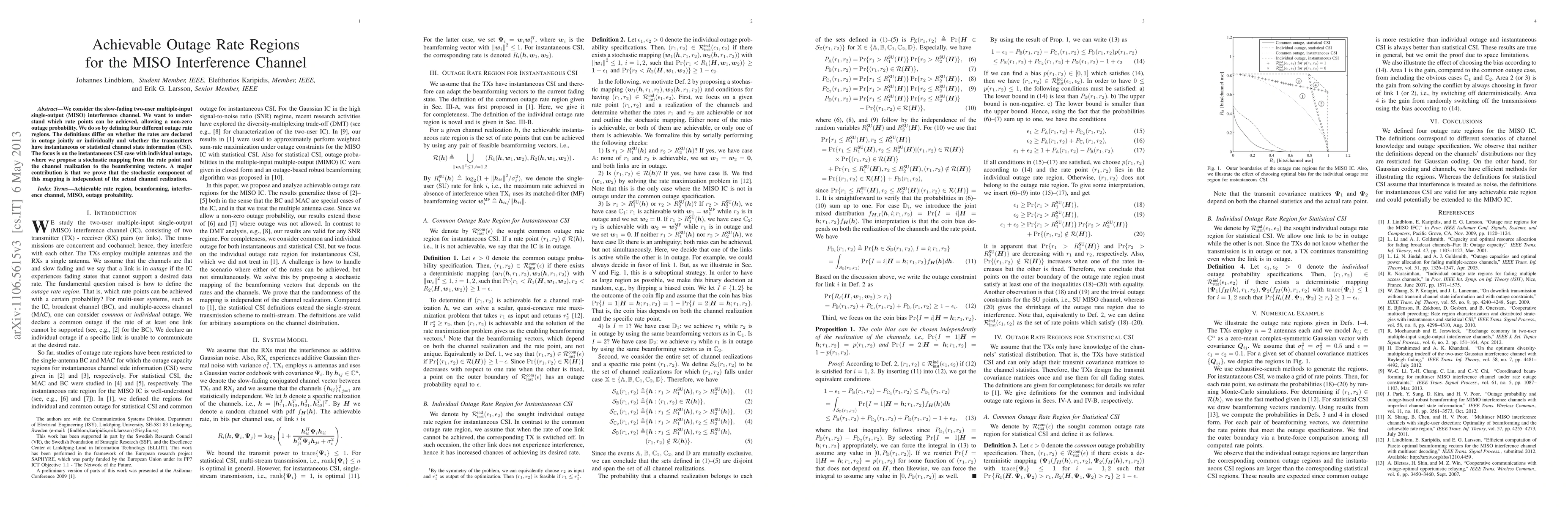 This paper explores achievable outage rate regions for a slow-fading MISO interference channel, defining four distinct regions based on joint or individual outage and types of channel state information. The key contribution is a stochastic mapping for beamforming vectors that maintains independence from channel realizations, focusing on instantaneous CSI with individual outage scenarios.