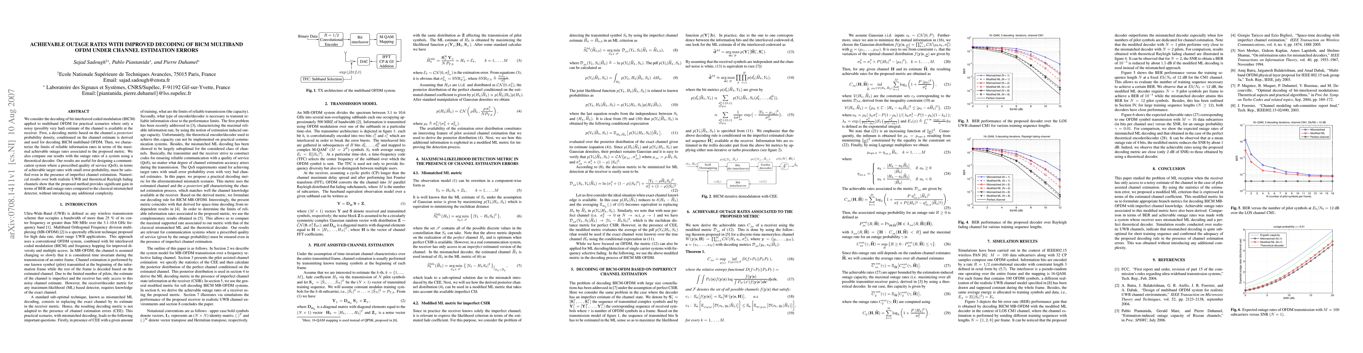This paper proposes a decoding metric for BICM applied to multiband OFDM under imperfect channel estimation, achieving better outage rates and lower BER compared to classical methods. The method provides significant gains without additional complexity, aiding in the design of robust communication systems.