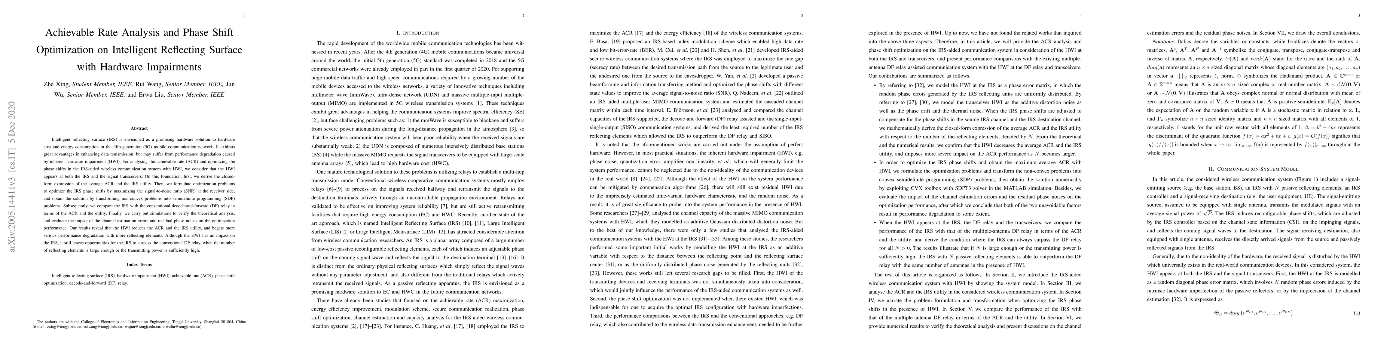 This paper analyzes the achievable rate (ACR) and optimizes phase shifts for intelligent reflecting surfaces (IRS) in 5G networks, considering hardware impairments (HWI). It derives a closed-form expression for average ACR and IRS utility, formulates optimization problems to maximize SNR, and compares IRS performance with conventional relays, showing that while HWI degrades performance, IRS can still outperform relays under certain conditions.