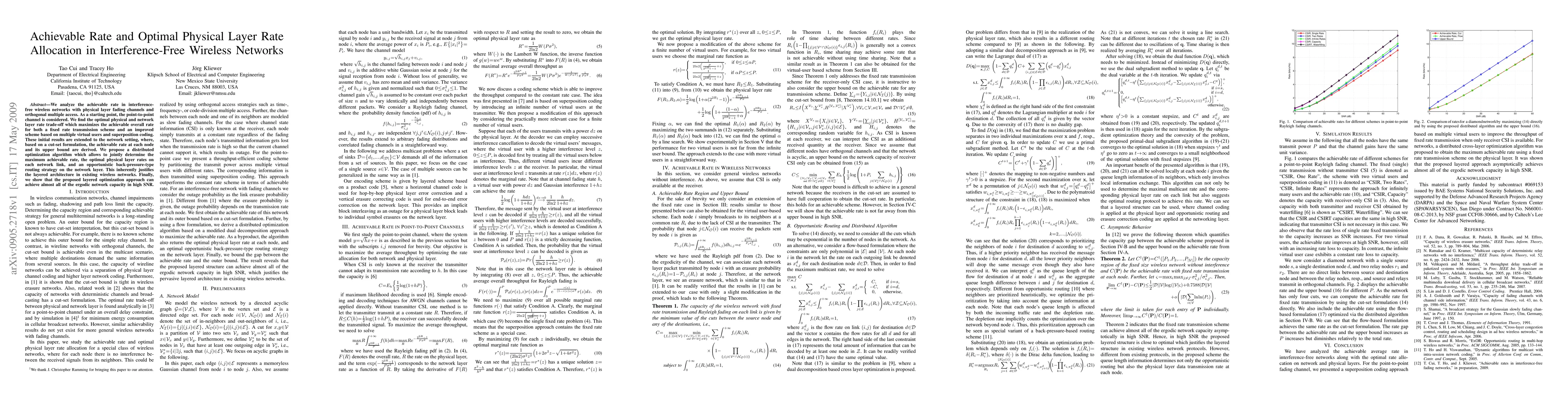 Researchers developed a method to optimize rate allocation in wireless networks, achieving near-capacity performance in high SNR conditions and justifying layered architectures. The approach maximizes overall achievable rate while minimizing physical layer rates.