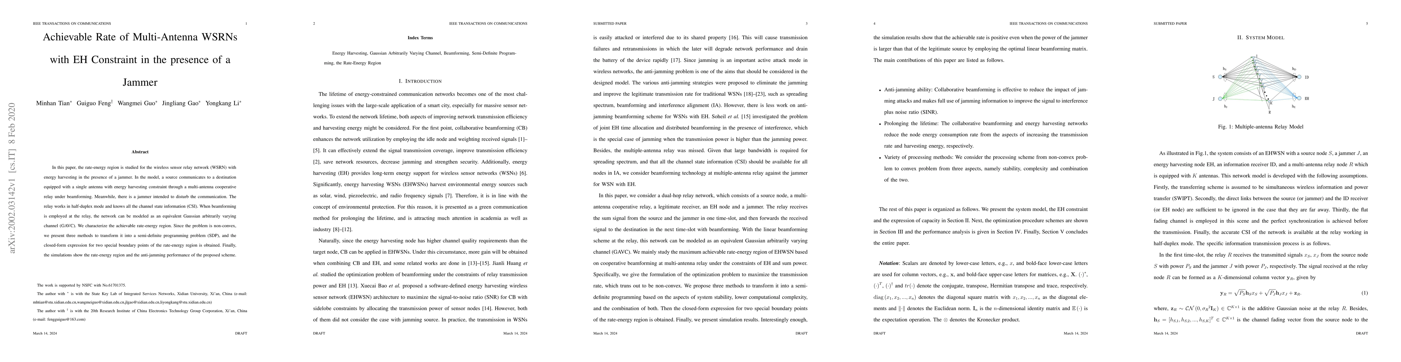 This paper investigates the achievable rate-energy region for a multi-antenna wireless sensor relay network (WSRN) with energy harvesting, under the presence of a jammer. The study employs beamforming at a multi-antenna relay and characterizes the region using semi-definite programming, revealing the network's anti-jamming performance through simulations.