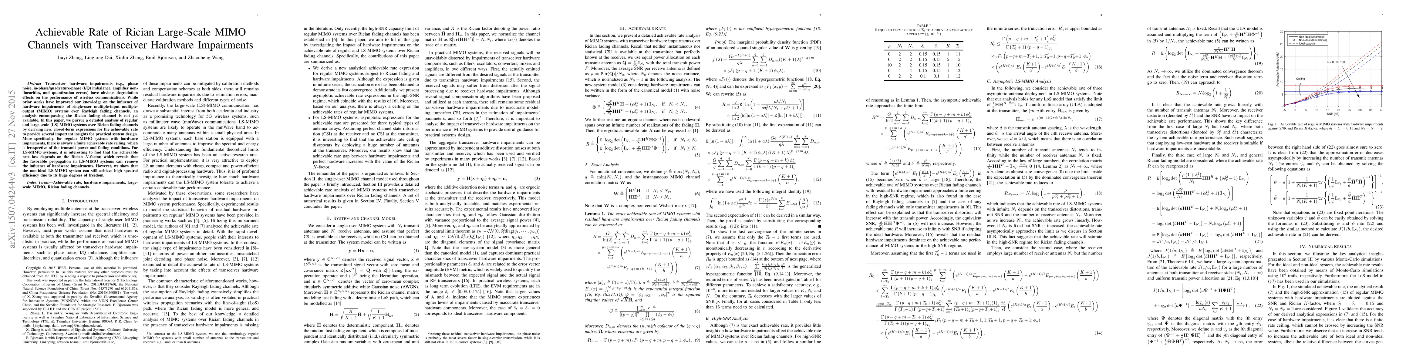 This paper analyzes the achievable rate of Rician large-scale MIMO channels under transceiver hardware impairments, deriving new closed-form expressions. It finds that while regular MIMO systems have a finite achievable rate ceiling regardless of power and fading, large-scale MIMO systems can mitigate rate loss depending on the Rician $K$-factor, yet still achieve high spectral efficiency due to their large degrees of freedom.