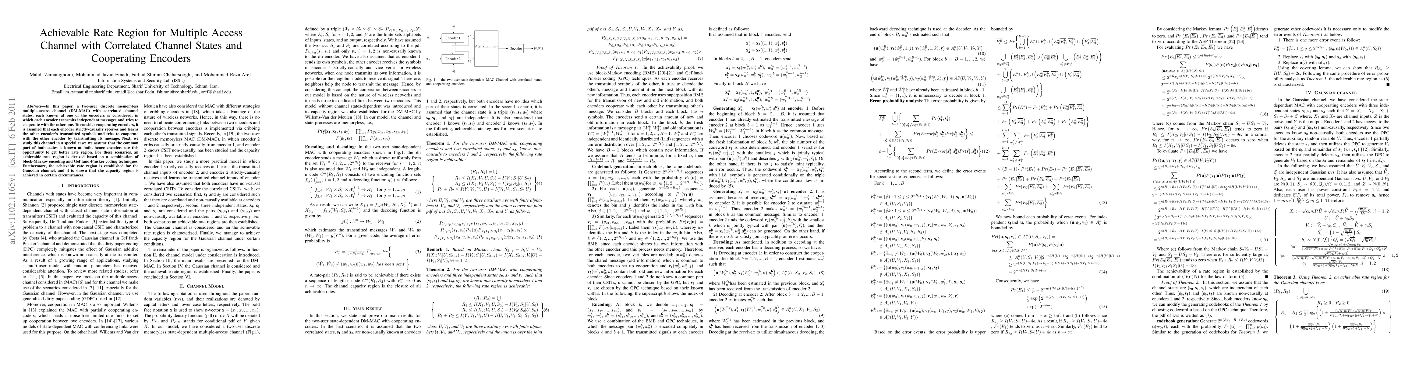 This paper investigates a two-user multiple-access channel with correlated channel states, where each encoder cooperates by learning the other's transmitted symbols. An achievable rate region is derived using block-Markov encoding and Gel'fand-Pinsker coding techniques, and it is shown that capacity is achieved under certain conditions.
