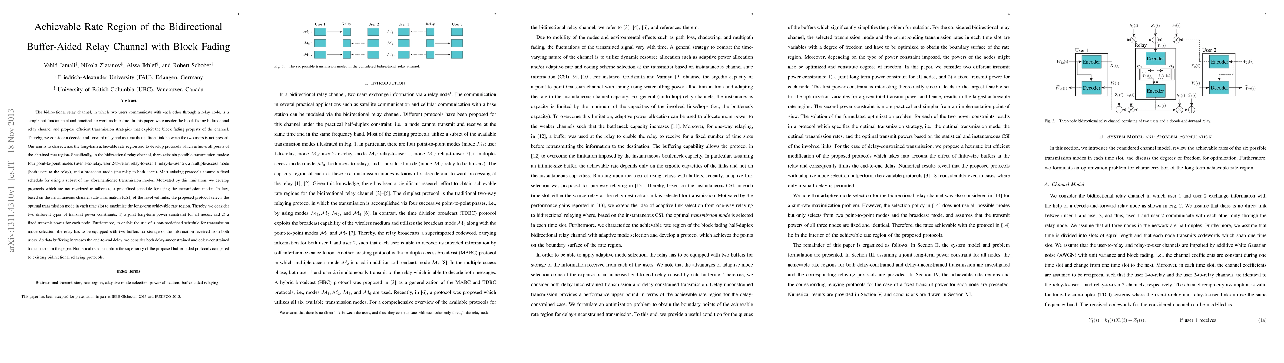 The bidirectional relay channel, in which two users communicate with each other through a relay node, is a simple but fundamental and practical network architecture. In this paper, we consider the block fading bidirectional relay channel and propose efficient transmission strategies that exploit the block fading property of the channel. Thereby, we consider a decode-and-forward relay and assume that a direct link between the two users is not present. Our aim is to characterize the long-term achievable rate region and to develop protocols which achieve all points of the obtained rate region. Specifically, in the bidirectional relay channel, there exist six possible transmission modes: four point-to-point modes (user 1-to-relay, user 2-to-relay, relay-to-user 1, relay-to-user 2), a multiple-access mode (both users to the relay), and a broadcast mode (the relay to both users). Most existing protocols assume a fixed schedule for using a subset of the aforementioned transmission modes. Motivated by this limitation, we develop protocols which are not restricted to adhere to a predefined schedule for using the transmission modes. In fact, based on the instantaneous channel state information (CSI) of the involved links, the proposed protocol selects the optimal transmission mode in each time slot to maximize the long-term achievable rate region. Thereby, we consider two different types of transmit power constraints: 1) a joint long-term power constraint for all nodes, and 2) a fixed transmit power for each node. Furthermore, to enable the use of a non-predefined schedule for transmission mode selection, the relay has to be equipped with two buffers for storage of the information received from both users. As data buffering increases the end-to-end delay, we consider both delay-unconstrained and delay-constrained transmission in the paper.
