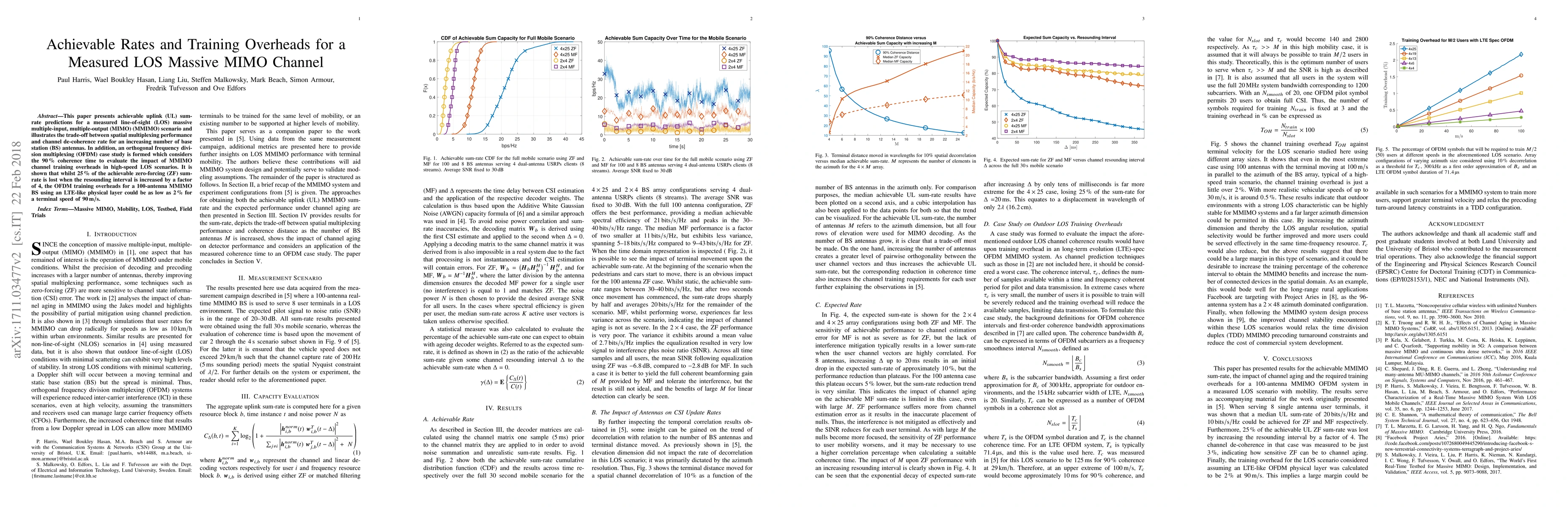 Researchers found that for a 100-antenna massive MIMO base station in a high-speed line-of-sight scenario, the achievable uplink sumrate can be as high as 90% of its theoretical maximum with only 2% training overheads. This suggests efficient channel training and improved performance in real-world conditions.