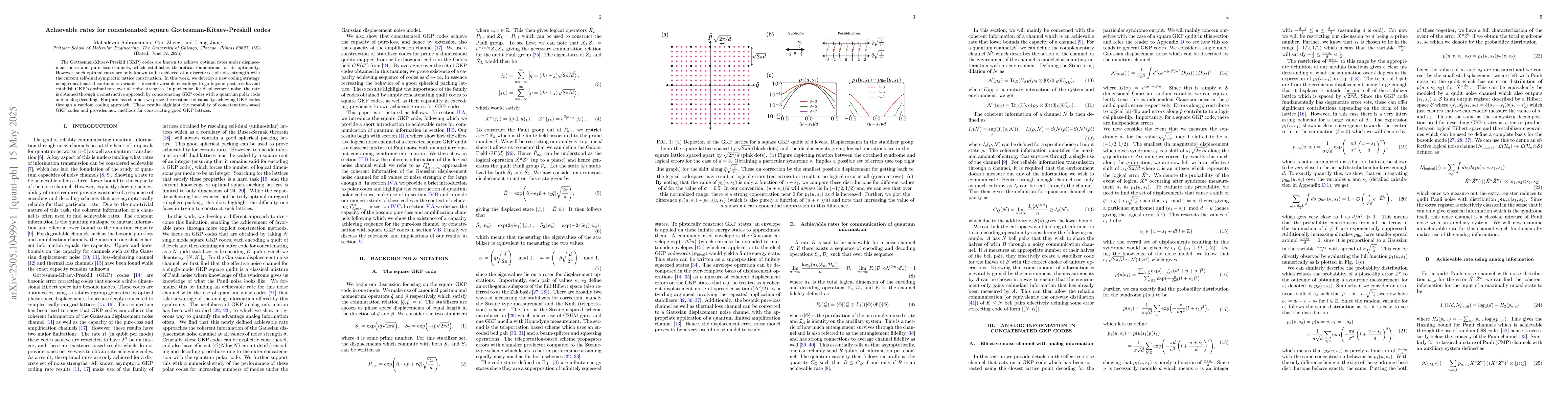 The development of a novel concatenated coding strategy for GKP codes, extending optimal rates to all noise strengths.