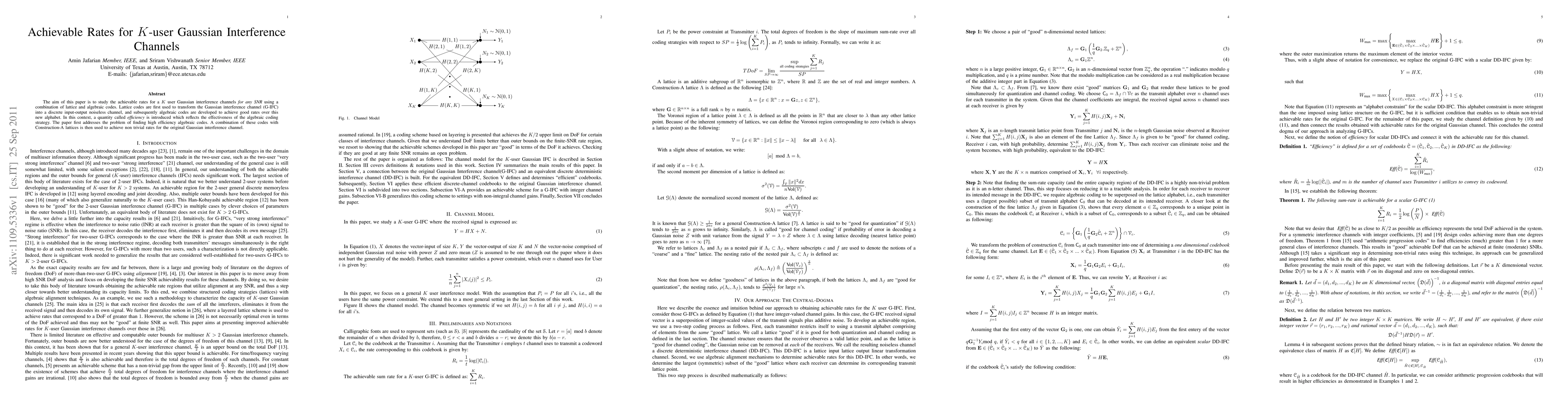 This paper investigates achievable rates for K-user Gaussian interference channels by transforming the channel using lattice codes and employing algebraic codes for high efficiency. It combines Construction-A lattices with high efficiency algebraic codes to achieve significant rates for the original Gaussian interference channel.