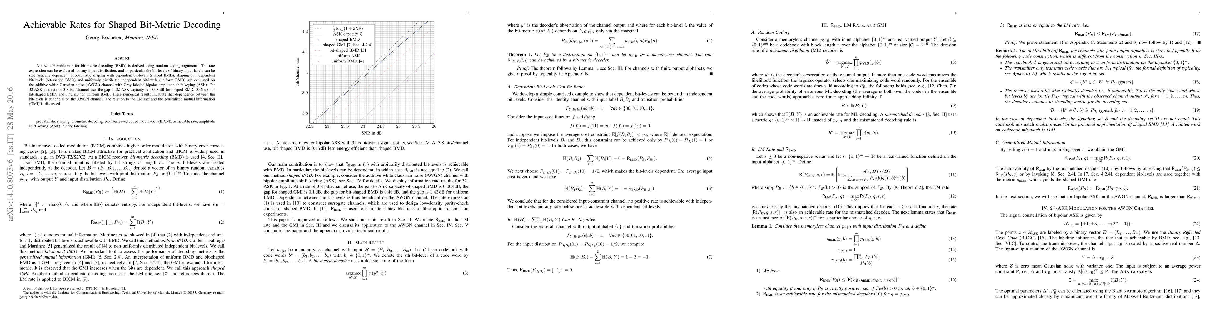 This paper derives a new achievable rate for shaped bit-metric decoding (BMD) using random coding arguments, showing that probabilistic shaping with dependent bit-levels achieves a smaller gap to capacity compared to independent bit-levels or uniform distributions on the AWGN channel.