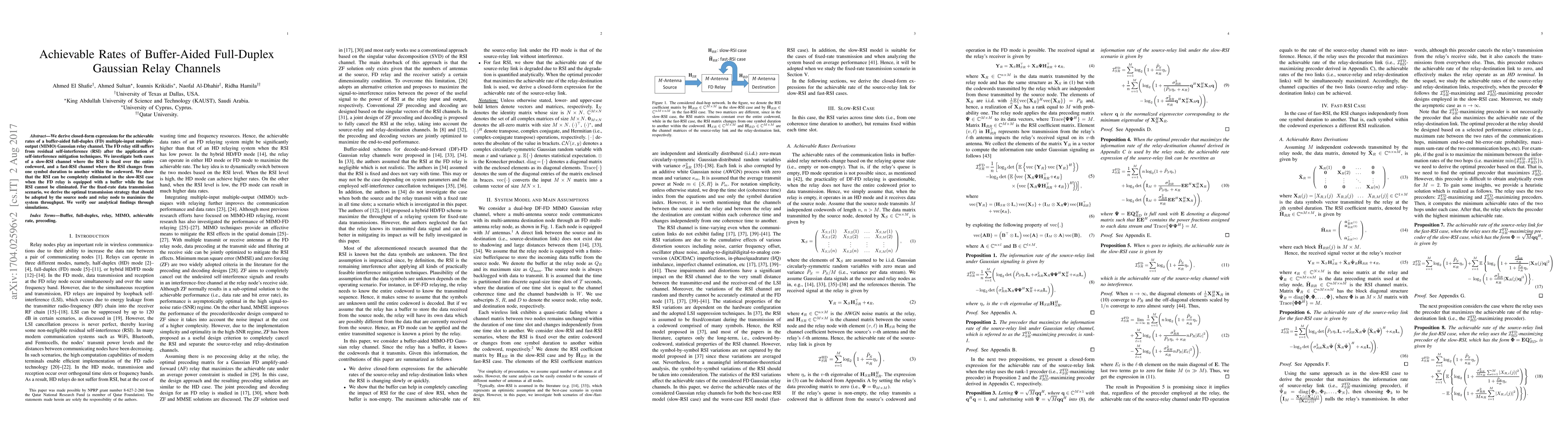This paper derives closed-form expressions for achievable rates in buffer-aided full-duplex Gaussian MIMO relay channels, showing that residual self-interference can be completely eliminated in slow-RSI scenarios but not in fast-RSI scenarios. It also proposes an optimal transmission strategy for maximizing system throughput.