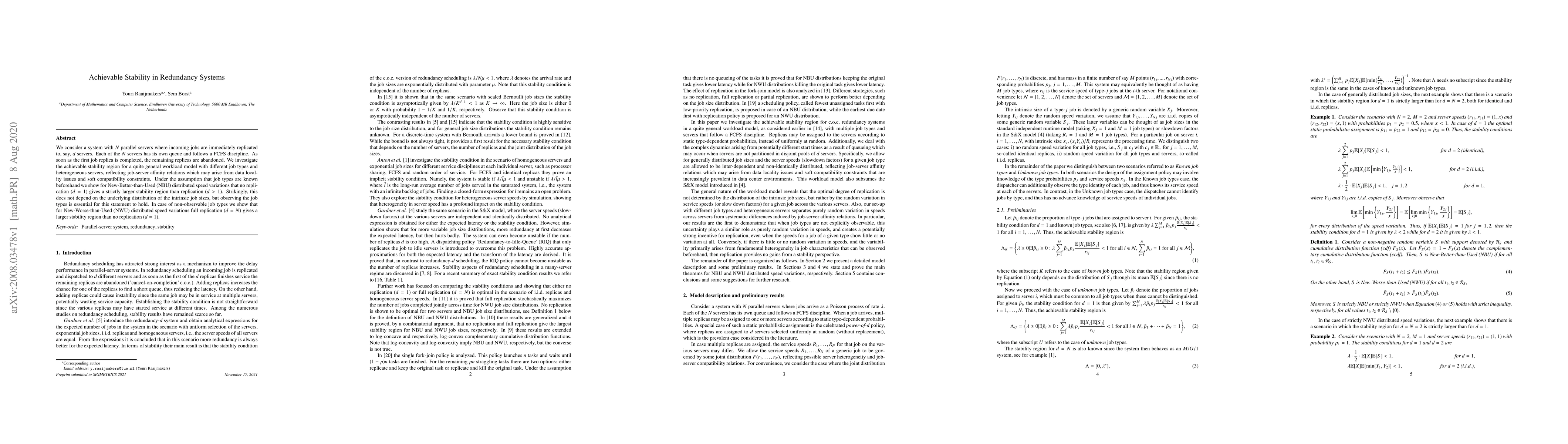 We consider a system with $N$ parallel servers where incoming jobs are immediately replicated to, say, $d$ servers. Each of the $N$ servers has its own queue and follows a FCFS discipline. As soon as the first job replica is completed, the remaining replicas are abandoned. We investigate the achievable stability region for a quite general workload model with different job types and heterogeneous servers, reflecting job-server affinity relations which may arise from data locality issues and soft compatibility constraints. Under the assumption that job types are known beforehand we show for New-Better-than-Used (NBU) distributed speed variations that no replication $(d=1)$ gives a strictly larger stability region than replication $(d>1)$. Strikingly, this does not depend on the underlying distribution of the intrinsic job sizes, but observing the job types is essential for this statement to hold. In case of non-observable job types we show that for New-Worse-than-Used (NWU) distributed speed variations full replication ($d=N$) gives a larger stability region than no replication $(d=1)$.