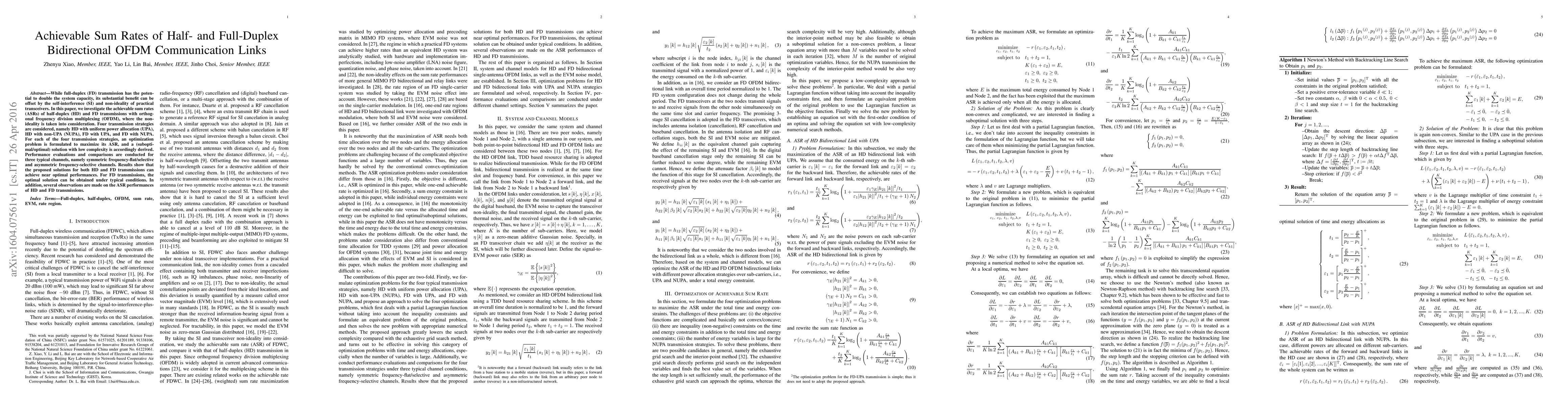 This paper examines the achievable sum rates of half-duplex and full-duplex OFDM communication links, accounting for non-ideal transceivers. Four transmission strategies are analyzed, with optimization problems and low-complexity solutions derived for each. Results indicate near-optimal performance for both HD and FD, with FD achieving optimal solutions under typical conditions. Insights are also provided on HD and FD transmission ASR performances.