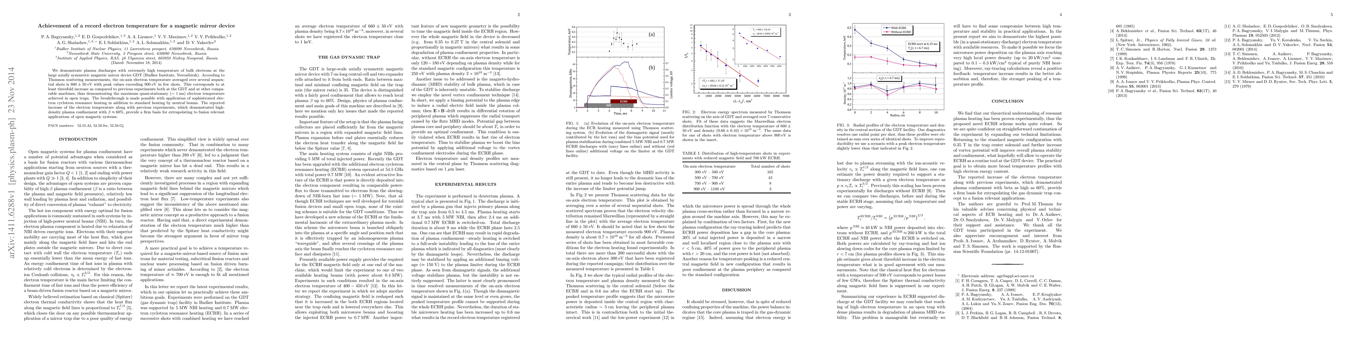 This paper reports record-high electron temperatures in the GDT magnetic mirror device, achieving an on-axis average temperature of 660 ± 50 eV, with peaks exceeding 900 eV, using advanced electron cyclotron resonance heating alongside neutral beam heating. This marks a threefold increase over previous experiments, laying a strong foundation for fusion applications.