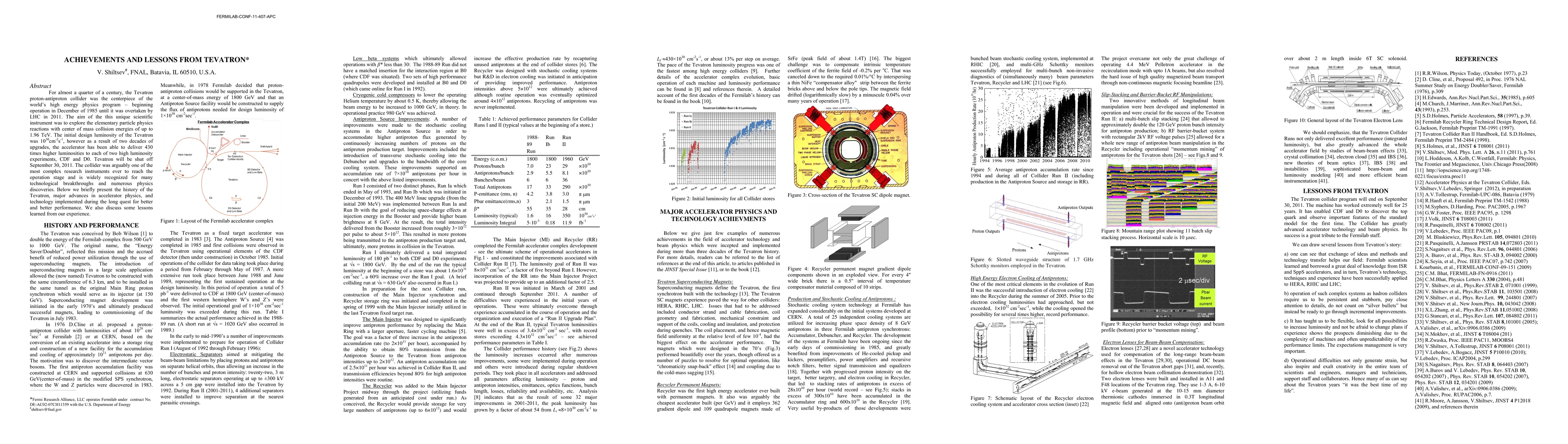 For almost a quarter of a century, the Tevatron proton-antiproton collider was the centerpiece of the world's high energy physics program - beginning operation in December of 1985 until it was overtaken by LHC in 2011. The aim of this unique scientific instrument was to explore the elementary particle physics reactions with center of mass collision energies of up to 1.96-TeV. The initial design luminosity of the Tevatron was 1030cm-2s-1, however as a result of two decades of upgrades, the accelerator has been able to deliver 430 times higher luminosities to each of two high luminosity experiments, CDF and D0. Tevatron will be shut off September 30, 2011. The collider was arguably one of the most complex research instruments ever to reach the operation stage and is widely recognized for many technological breakthroughs and numerous physics discoveries. Below we briefly present the history of the Tevatron, major advances in accelerator physics, and technology implemented during the long quest for better and better performance. We also discuss some lessons learned from our experience.