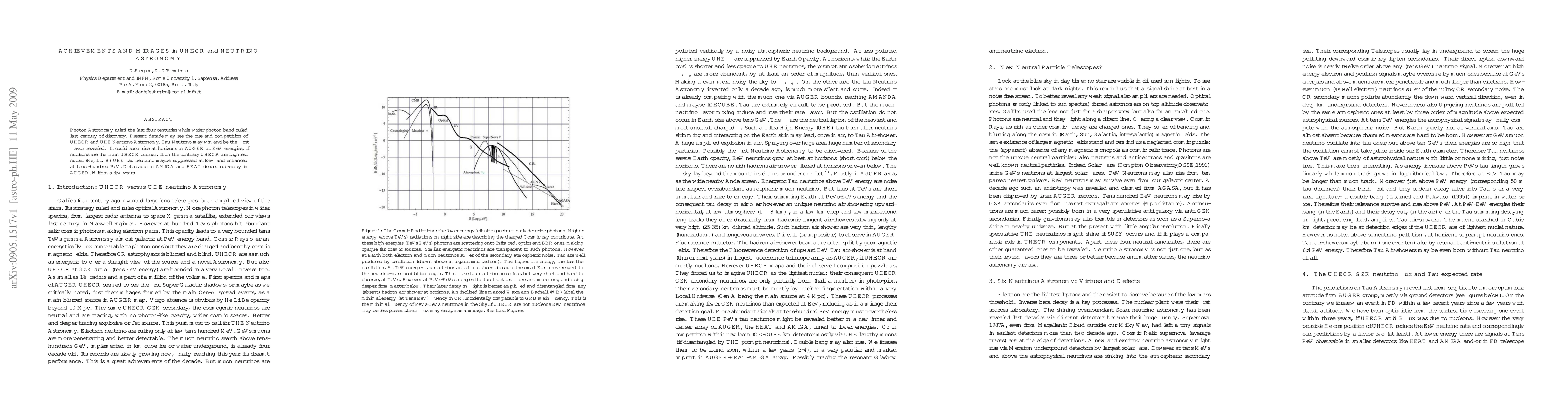 Photon Astronomy ruled the last four centuries while wider photon band ruled last radio-X-Gamma century of discovery. Present decade may see the rise and competition of UHECR and UHE Neutrino Astronomy. Tau Neutrino may win and be the first flavor revealed. It could soon rise at horizons in AUGER at EeV energies, if nucleons are the main UHECR currier. If on the contrary UHECR are Lightest nuclei (He, Li. B) UHE tau neutrino maybe suppressed at EeV and enhanced at tens -hundred PeV. Detectable in AMIGA and HEAT denser sub-array in AUGER. Within a few years.