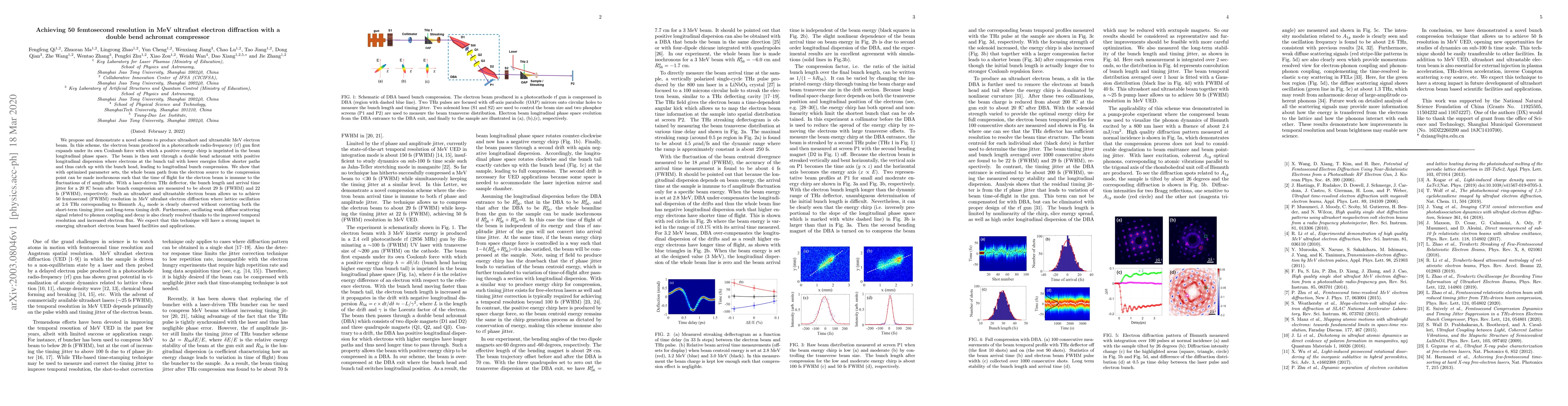 This paper proposes a novel method to achieve ultrashort and ultrastable MeV electron beams using a double bend achromat compressor, resulting in 50 femtosecond resolution in MeV ultrafast electron diffraction. The technique effectively compresses the electron beam, enabling clear observation of lattice oscillations and weak diffuse scattering signals.
