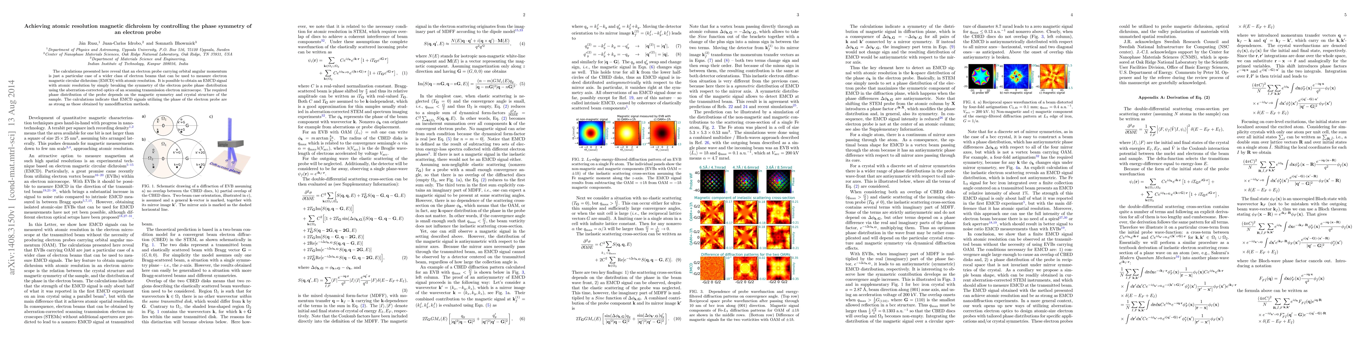 The calculations presented here reveal that an electron probe carrying orbital angular momentum is just a particular case of a wider class of electron beams that can be used to measure electron magnetic circular dichroism (EMCD) with atomic resolution. It is possible to obtain an EMCD signal with atomic resolution by simply breaking the symmetry of the electron probe phase distribution using the aberration-corrected optics of an scanning transmission electron microscope. The required phase distribution of the probe depends on the magnetic symmetry and crystal structure of the sample. The calculations indicate that EMCD signals utilizing the phase of the electron probe are as strong as those obtained by nanodiffraction methods.