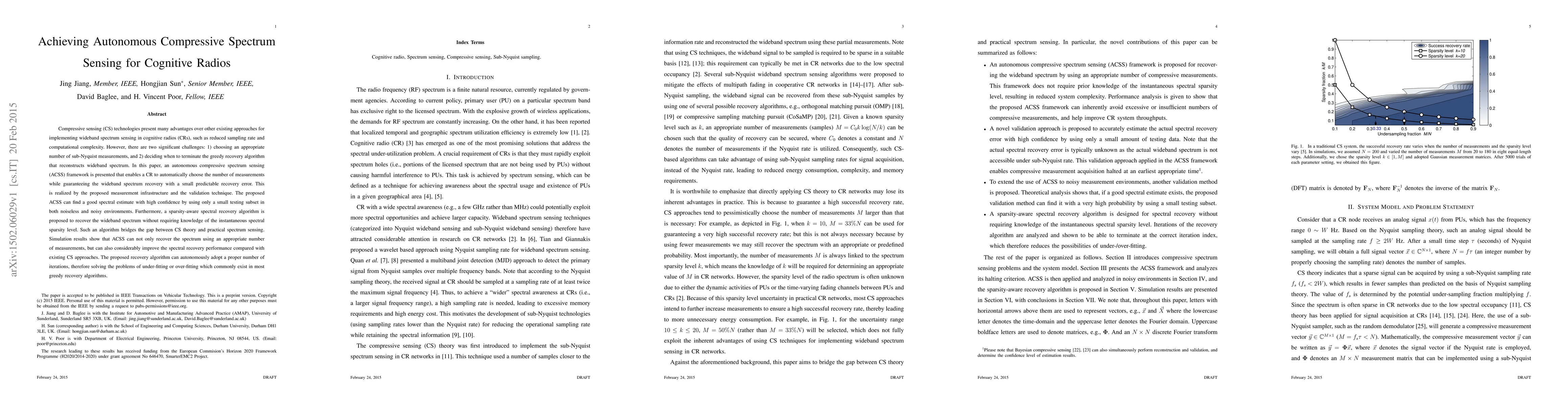 This paper proposes an autonomous compressive spectrum sensing (ACSS) framework for cognitive radios that automatically determines the number of sub-Nyquist measurements and optimizes spectrum recovery, achieving high performance with minimal recovery error and without requiring prior knowledge of spectral sparsity.