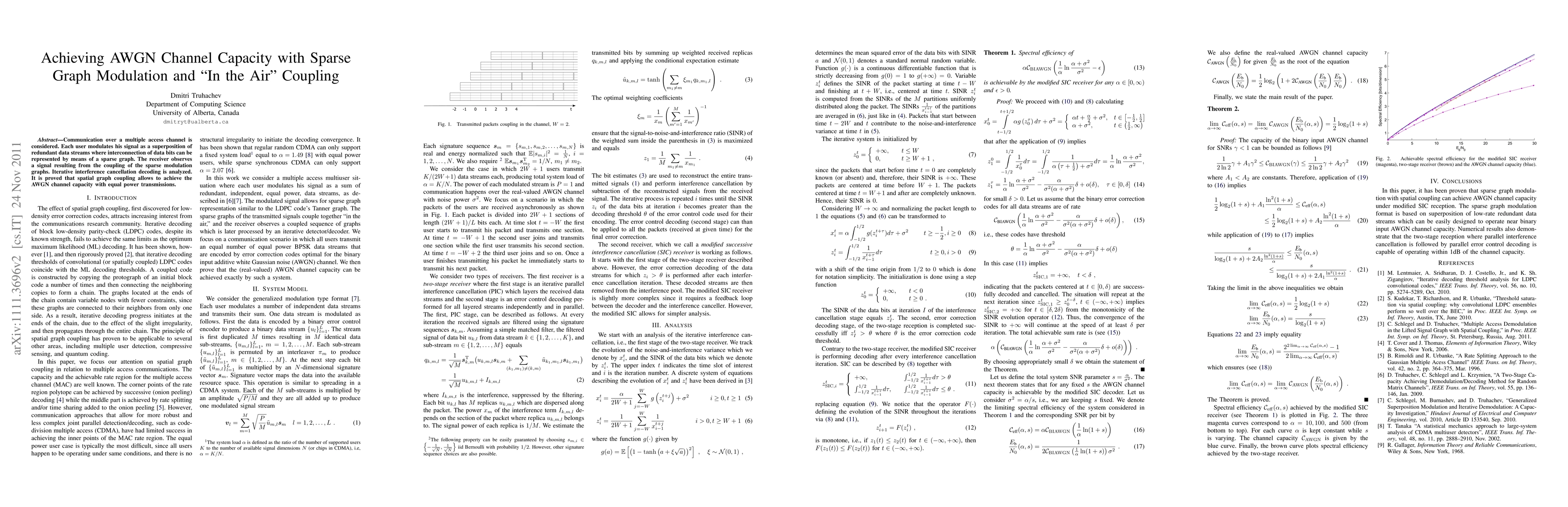 Researchers show that using sparse graph modulation and coupling can achieve the maximum capacity of a wireless channel with equal power transmissions, surpassing traditional methods.