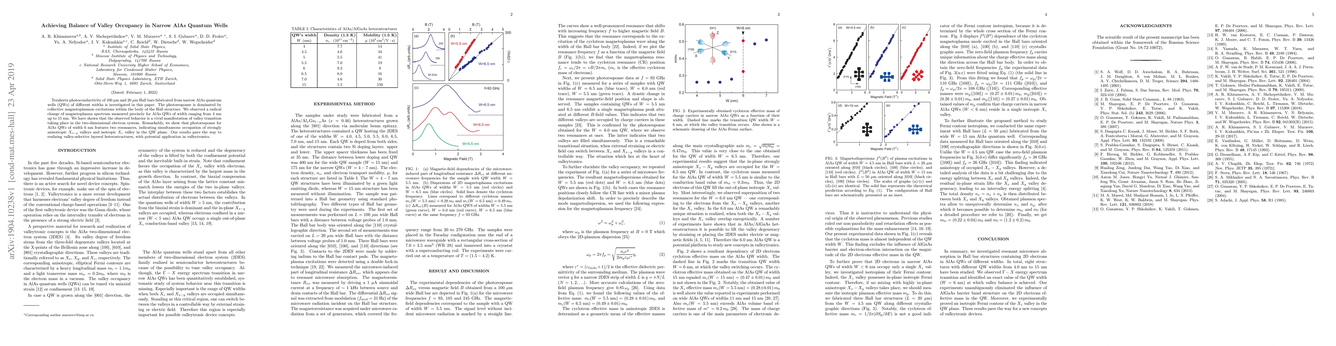 This paper investigates the terahertz photoconductivity in narrow AlAs quantum wells, revealing a significant change in magnetoplasma spectrum with quantum well width. It demonstrates that valley occupancy balance in these wells can be achieved, particularly at 6 nm width, showing simultaneous occupation of anisotropic and isotropic valleys, which could advance valleytronics.